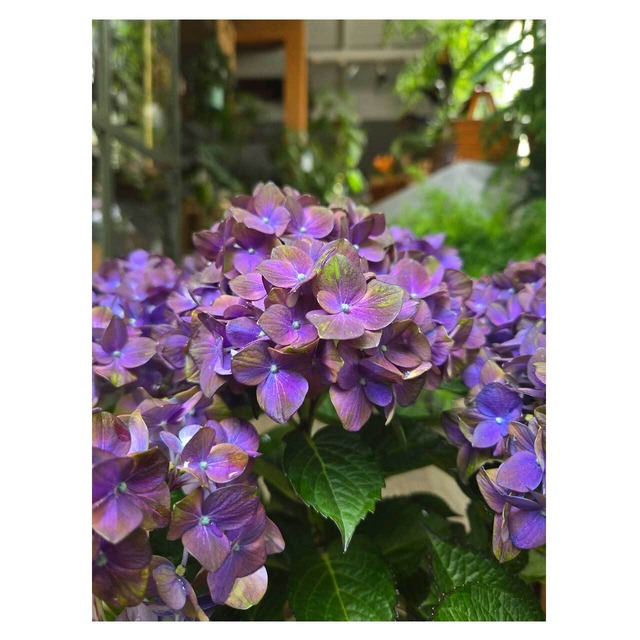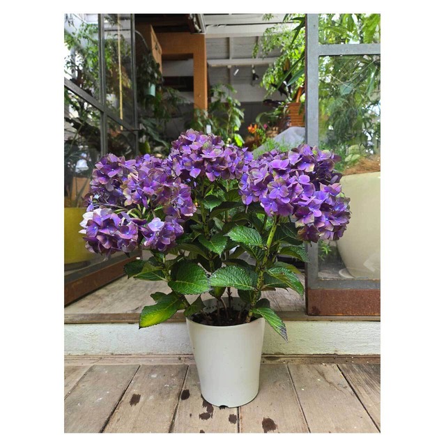 ハイドランジア マジカルシリーズは切り花用に育種された品種で、花弁が厚めで花持ちが良く、咲き始めから徐々に花色が変化してアンティークカラーになるまで、長期間楽しめます。真夏など強すぎる直射日光は避けて育ててあげると、きれいな花色を保ちやすくなります。