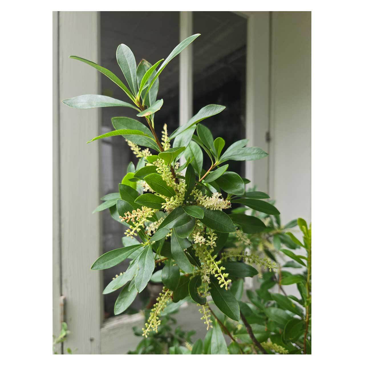 爽やかな色あいの葉に、ところどころ花芽が見られている キリラ ラセミフローラ。