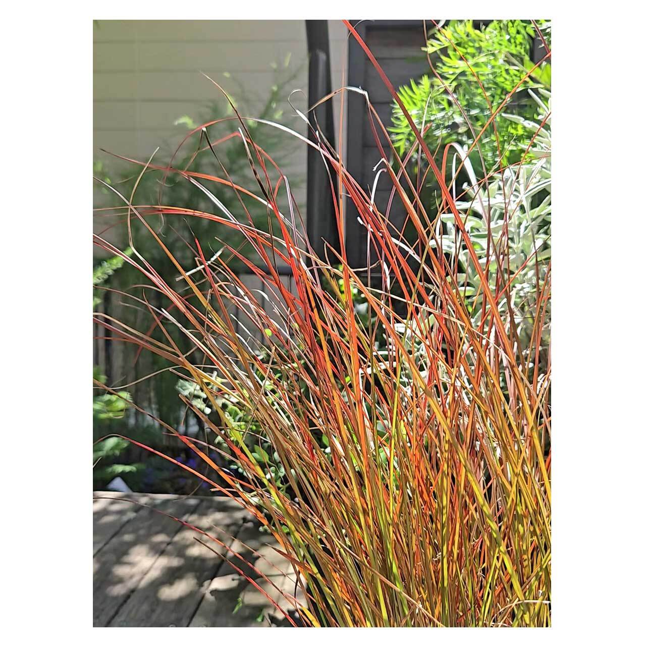 細く色鮮やかな葉が美しい、カレックス テヌイクルミス。日が当たると、さらに輝いて見えます。
