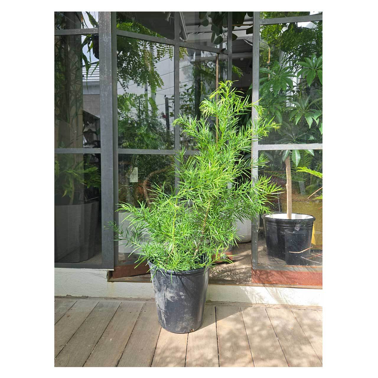 アフリカ東部の山林地域に自生する、細長く柔らかな葉が密生する常緑樹で、アフリカでは最も背の高い針葉樹と言われています。日本での流通量は少なめのようです。