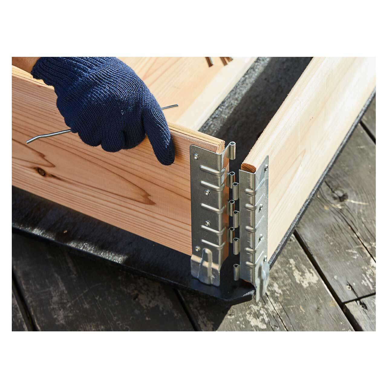 四角の端部分を組み合わせてピンを差し込む簡易組立仕様で、場所を決めて土や芝生に差し込んで設置します。野菜など、深さが必要な場合は2つ重ねて使用することも可能です。