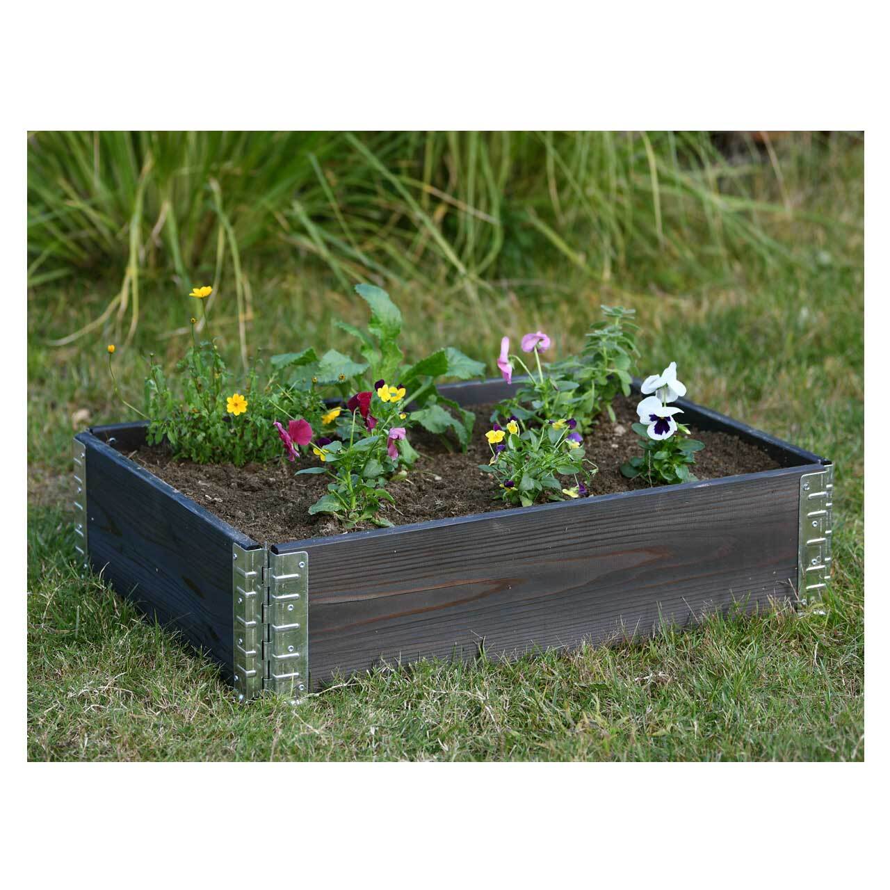 天然の木を使用したガーデンボックス(レイズドベッド/立ち上げ花壇)。こちらは塗装タイプ・ブラックです。組立てて培養土を入れれば、気軽に花壇やミニ菜園を始められます。