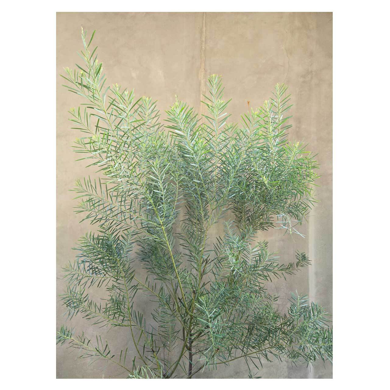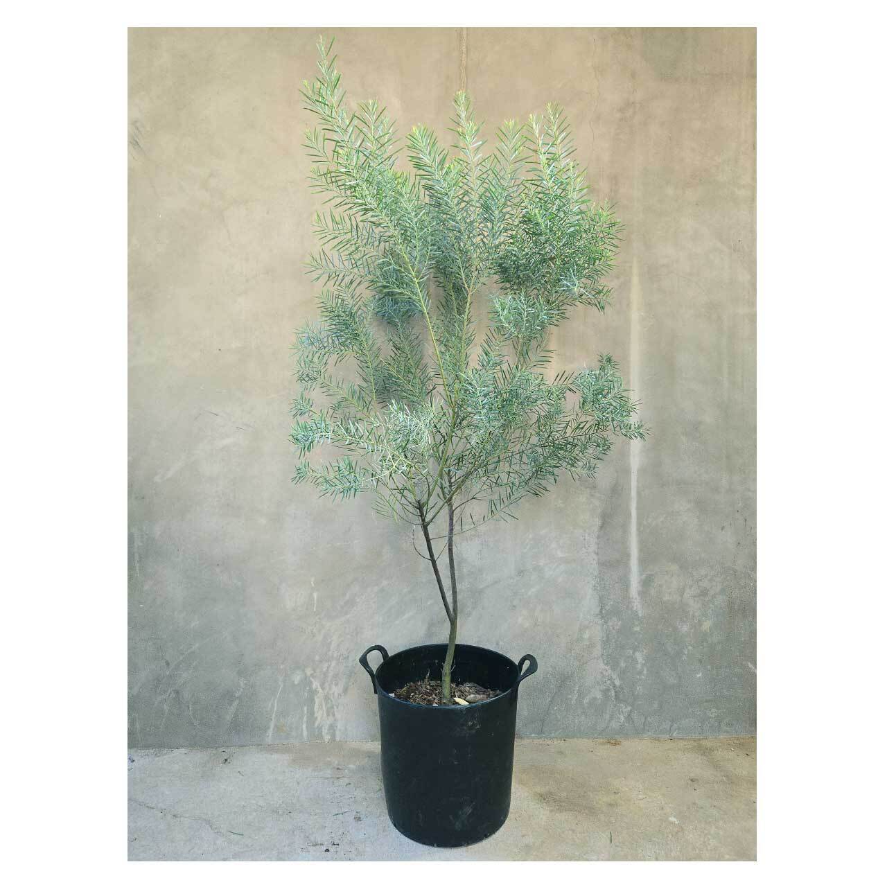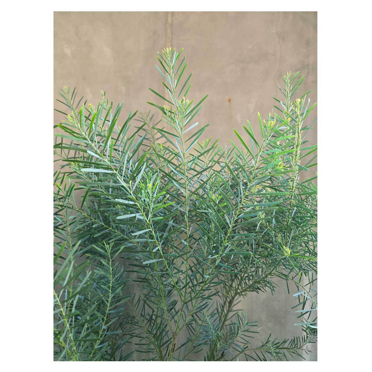 熱帯・亜熱帯地域に分布するアカシアは世界で約600種ほどあります。こちらのスノーウィーリバーはオーストラリア原産で、灰緑色の線形の葉を持ち、芳香のある黄色の花を咲かせます。樹高2~4mとアカシアの中ではコンパクトに育つ品種で、地際から株状になりやすいため管理しやすく、限られたスペースにおすすめです。