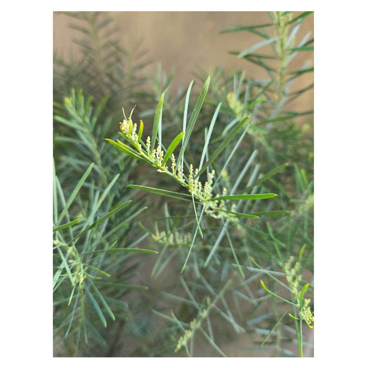 シルバーがかった細葉が美しい、アカシア ブアマニ―。一般的にはスノーウィーリバーワトルと呼ばれます。
