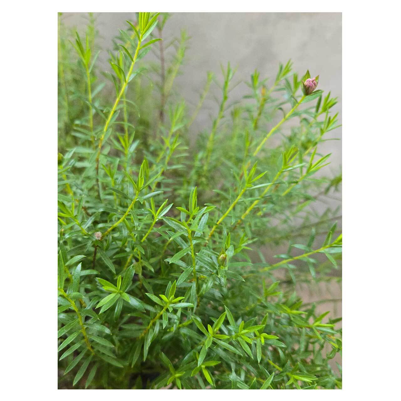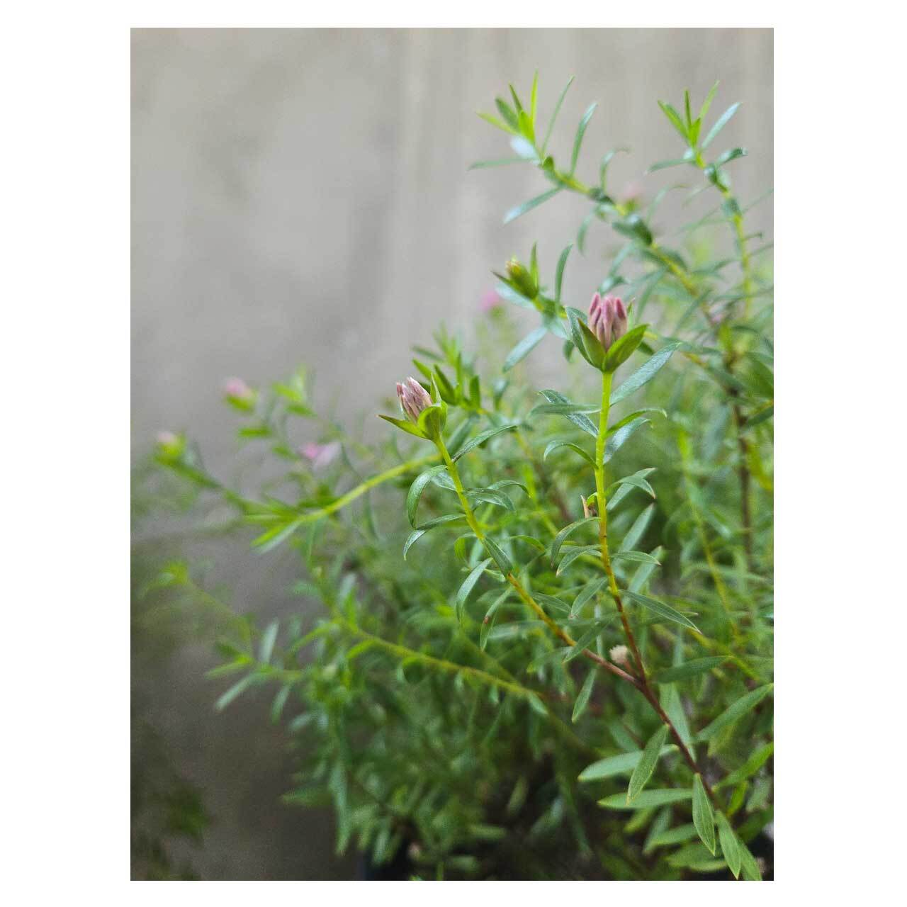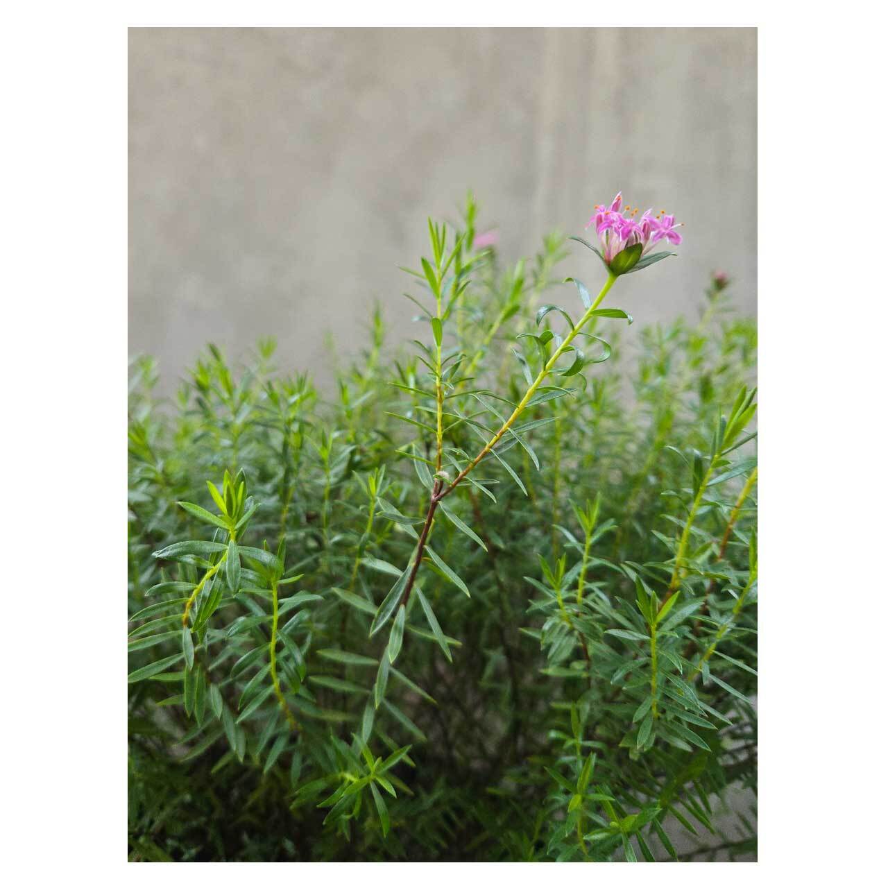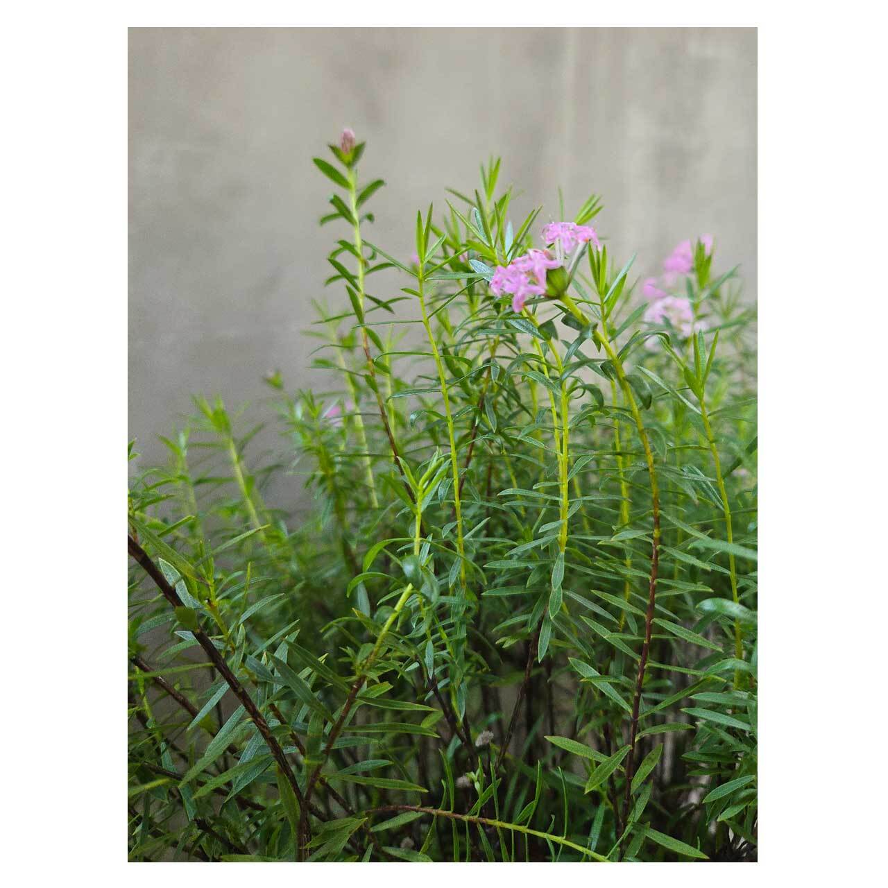 繊細な印象の花と野趣のある枝葉のバランスがオージープランツらしい感じもあり、気になる存在のピメレア。お庭やベランダで育てながら、お楽しみいただけたらと思います。