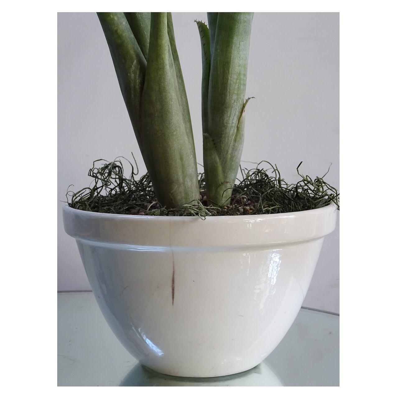 鉢は器のサイズに合わせてSeedingで調整した鉢サイズに植えています。器の中に受け皿も設置済みですので水やりはそのまましていただけますが、あげすぎると器に水が溢れ出ることがありますので溢れた水は捨てていただくか、心配な方はトレーから持ち上げてあげてあげてください。