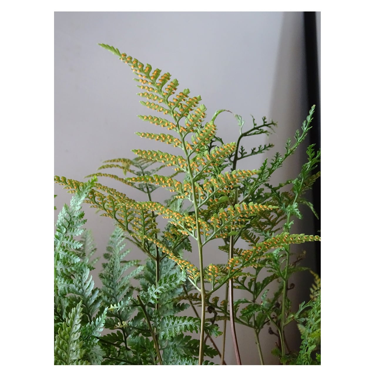あわせた植物は、シノブ。涼しげな葉が印象的な着生シダ植物で、毛の生えた太い根茎から葉を伸ばします。さわやかで繊細そうな見た目ながらも、日本全国に分布するシダ植物で丈夫な植物です。