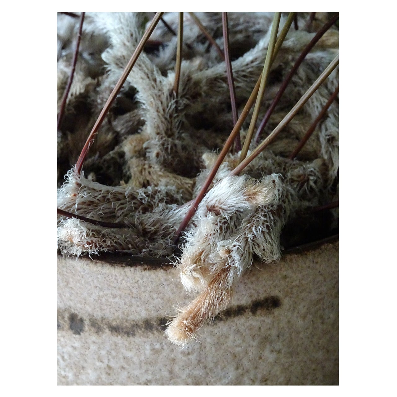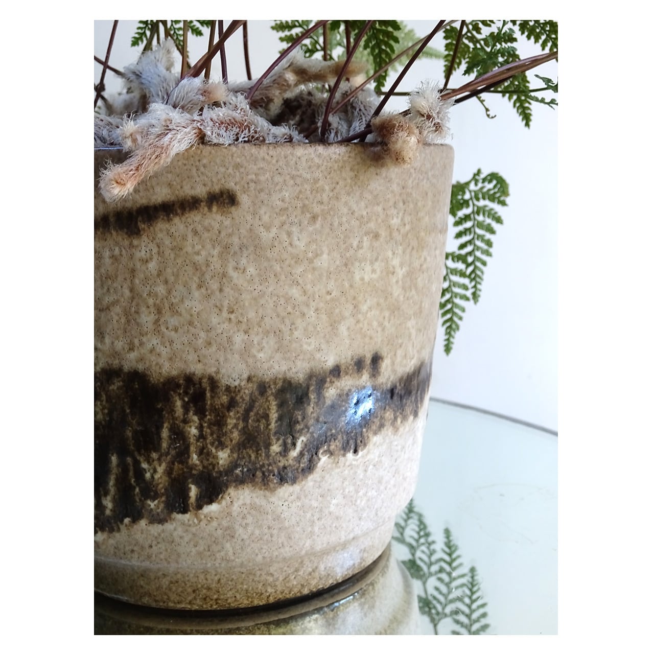 器は1970年代前後のドイツのヴィンテージ、通称ファットラヴァ(Fat Lave)といわれる陶磁器です。深みのある釉薬は見る角度によって表情が変わり、柔らかい印象の質感は植物の魅力を引き立ててくれます。