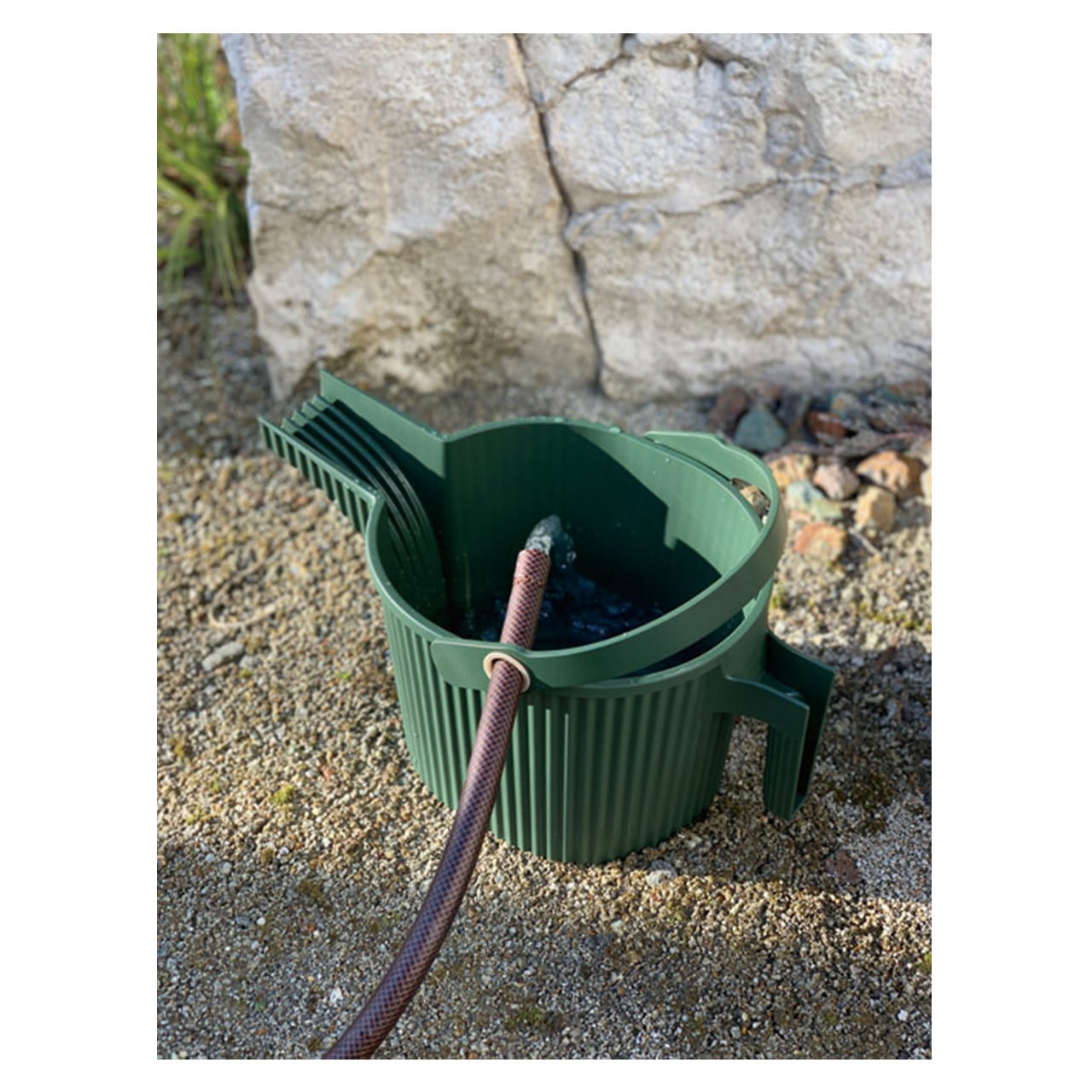 ハンドルとグリップは流量をコントロールしやすい設計となっており、底面にはくぼみもあるので持ちやすい設計。ハンドルの内側は握りやすいように凸形状となっており、手に優しくフィットしてくれます。手放しで水を貯められるホースリングもついているので、庭仕事をしながらの使用に便利なジョーロです。