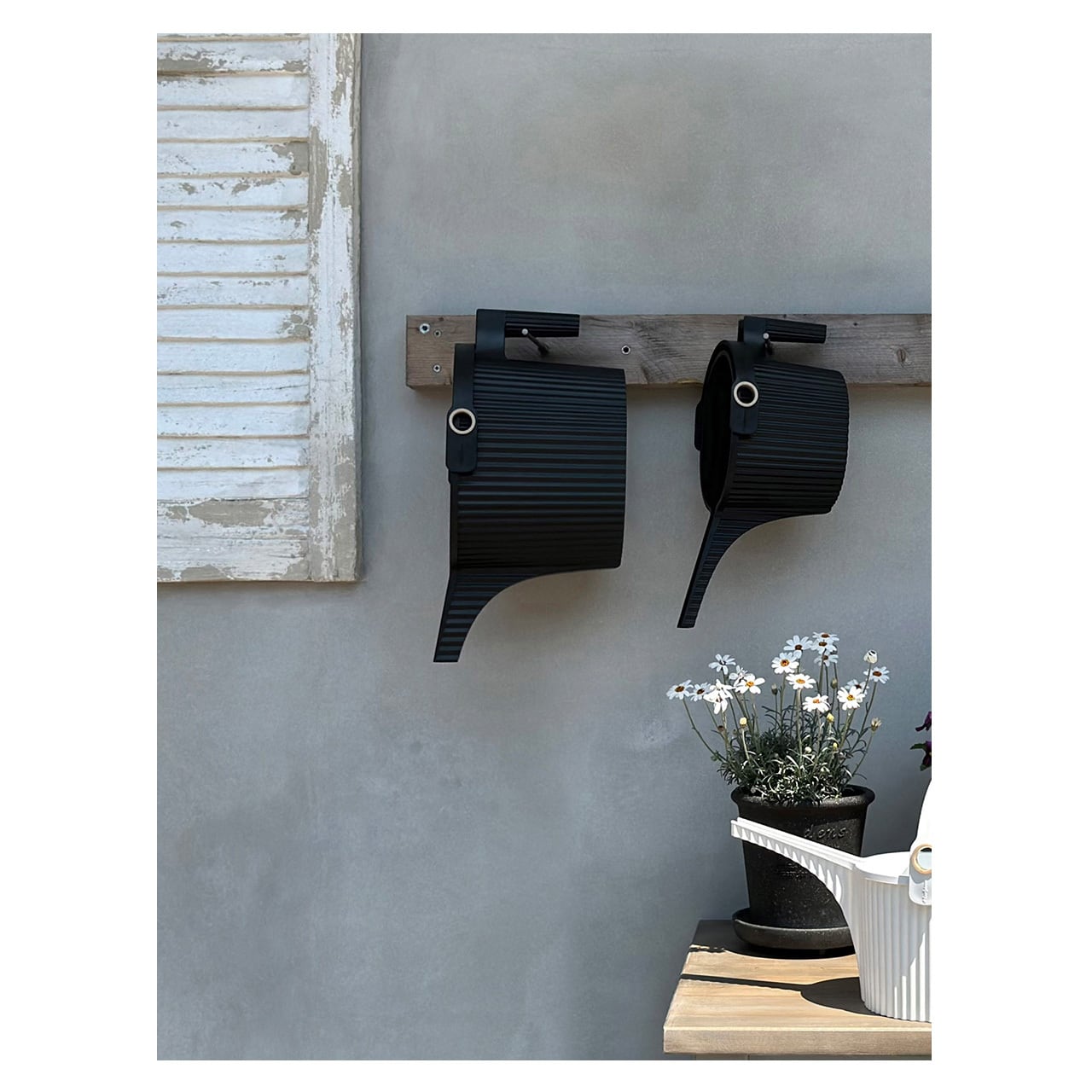また、ジョーロの内側には液体肥料の希釈などに便利なメモリが付いており、オープンタイプのタンクはスタッキング可能であったり、エアプランツのソーキングなどバケツとしての役割も担ってくれる構造になっています。
