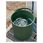 バスケットには持ち運びに便利なハンドルがついていて、ハンドルのリングにホースを通せばホースを固定した状態で水を貯めることができる優れもの。