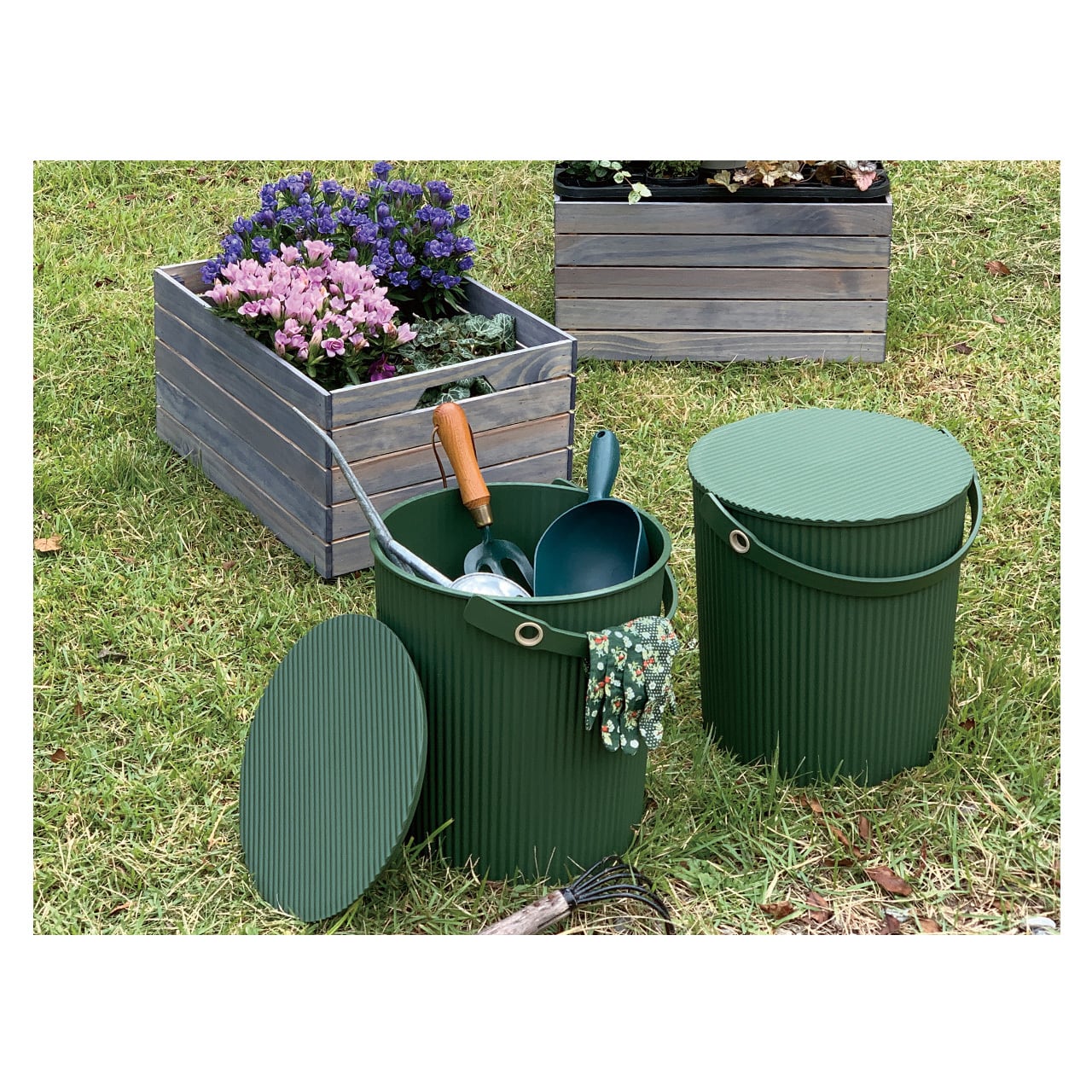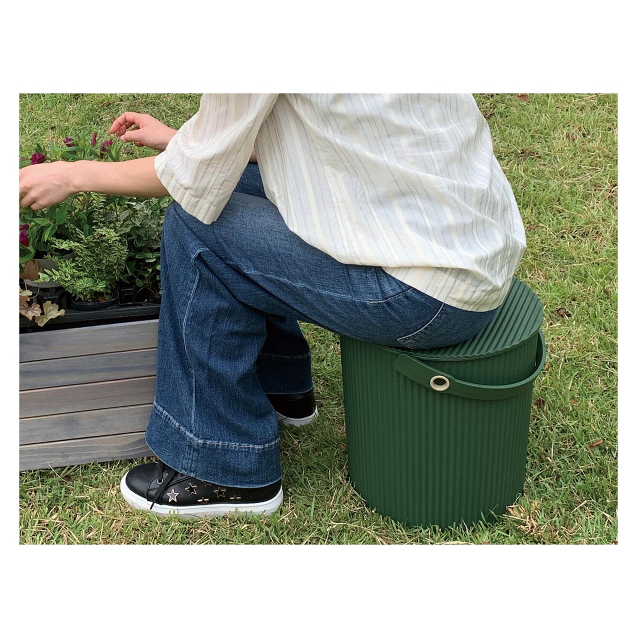 蓋をすれば積み上げての収納やゴミ箱としても。またまた植え替えなどの作業時には、腰掛けることもできます。蓋全体耐荷重が150kgとなるためスツールとしても安心して役立ってくれそうです。