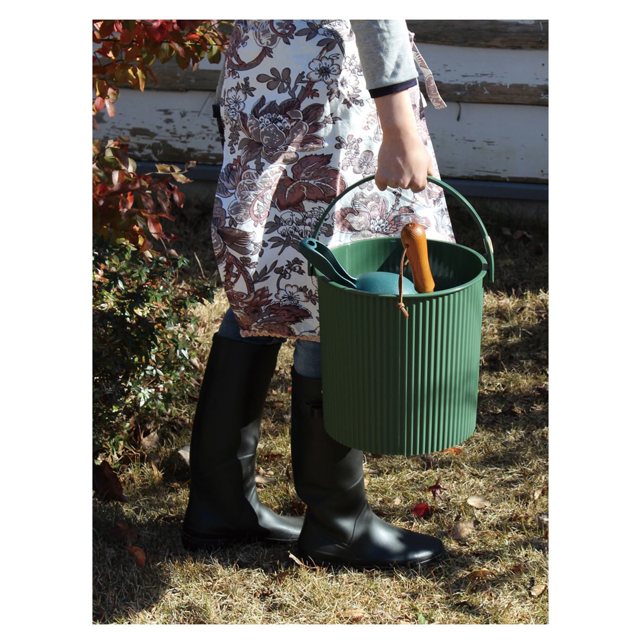 ガーデニンググッズや土入れなどの容器として最適な、座れるツールバスケット。