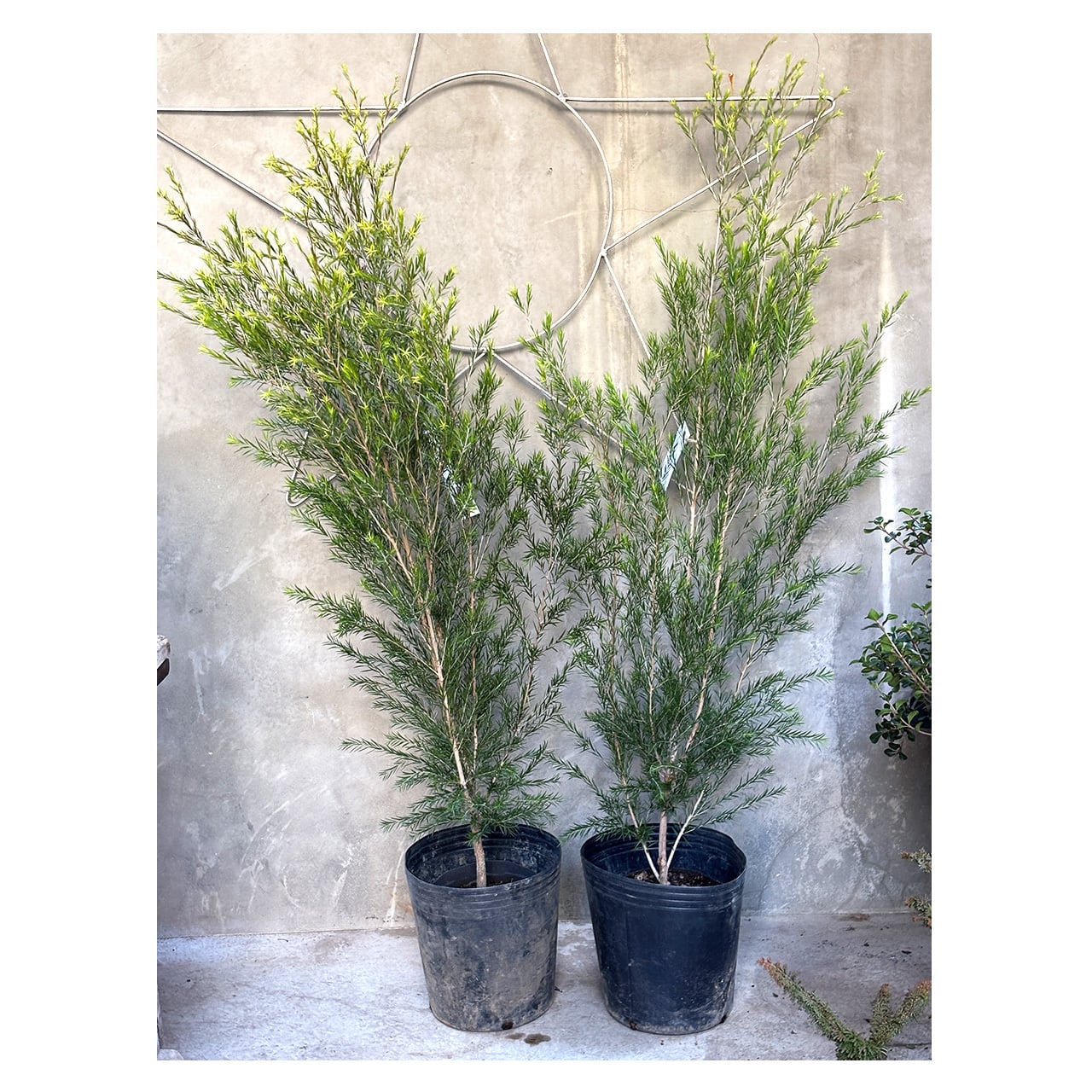 在来のブラックティーツリーに比べて成長が遅く、直立性で樹形の整いやすい品種のため管理もしやすいでしょう。目立った病虫害もなく丈夫で育てやすいので、常緑性のメインツリーとして初心者の方にもおすすめです。