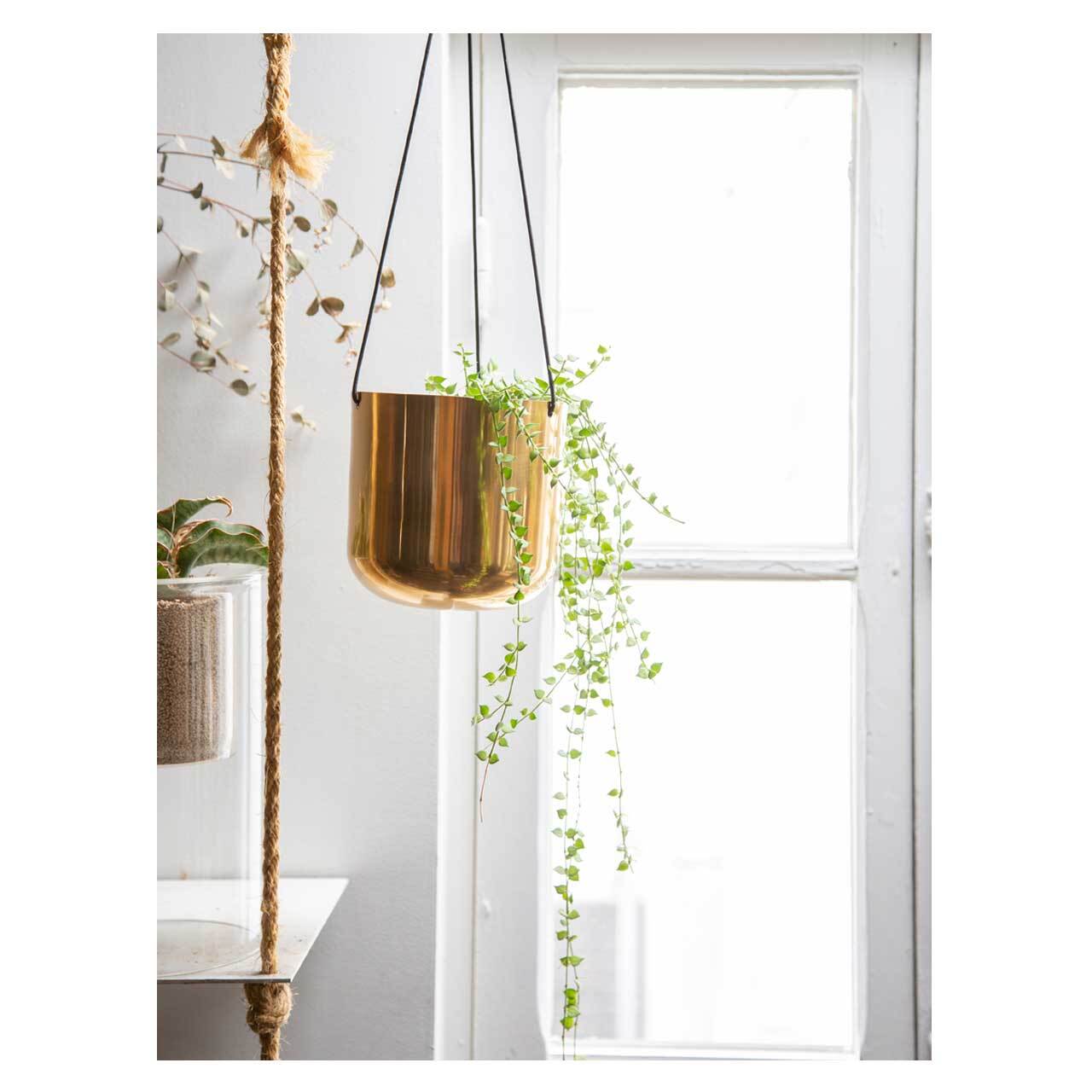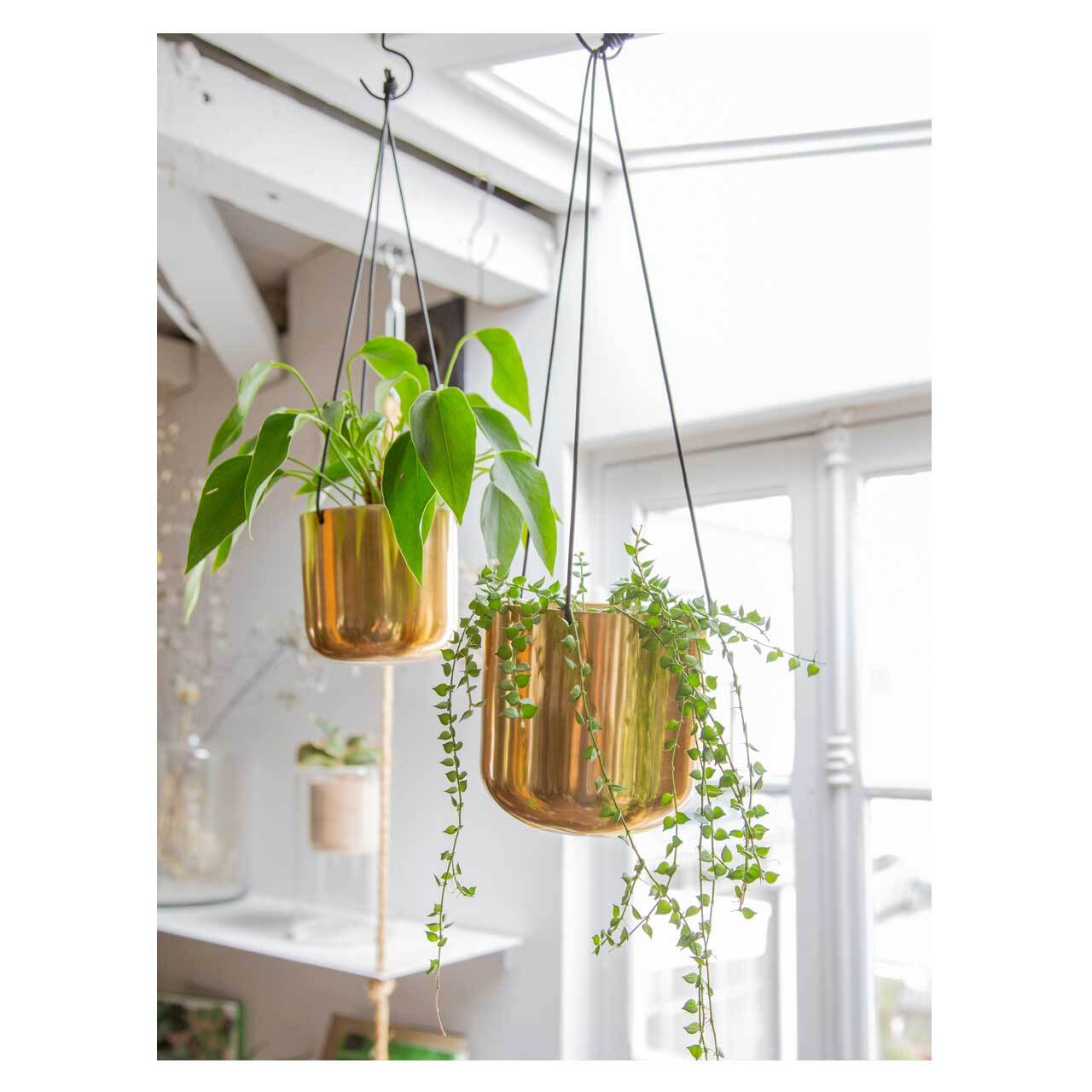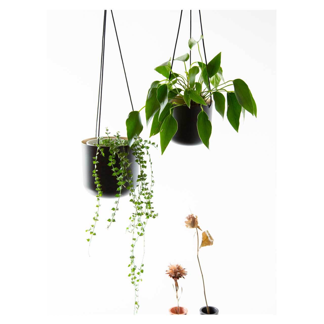 こちらはハンギングとしては少し大きめの直径14.5cmのタイプ。見た目は重厚な雰囲気ですが、アルミ製で重くないため扱いやすく、下から水が滴ることもないので、植物に水をあげた後にも吊るしておけます。