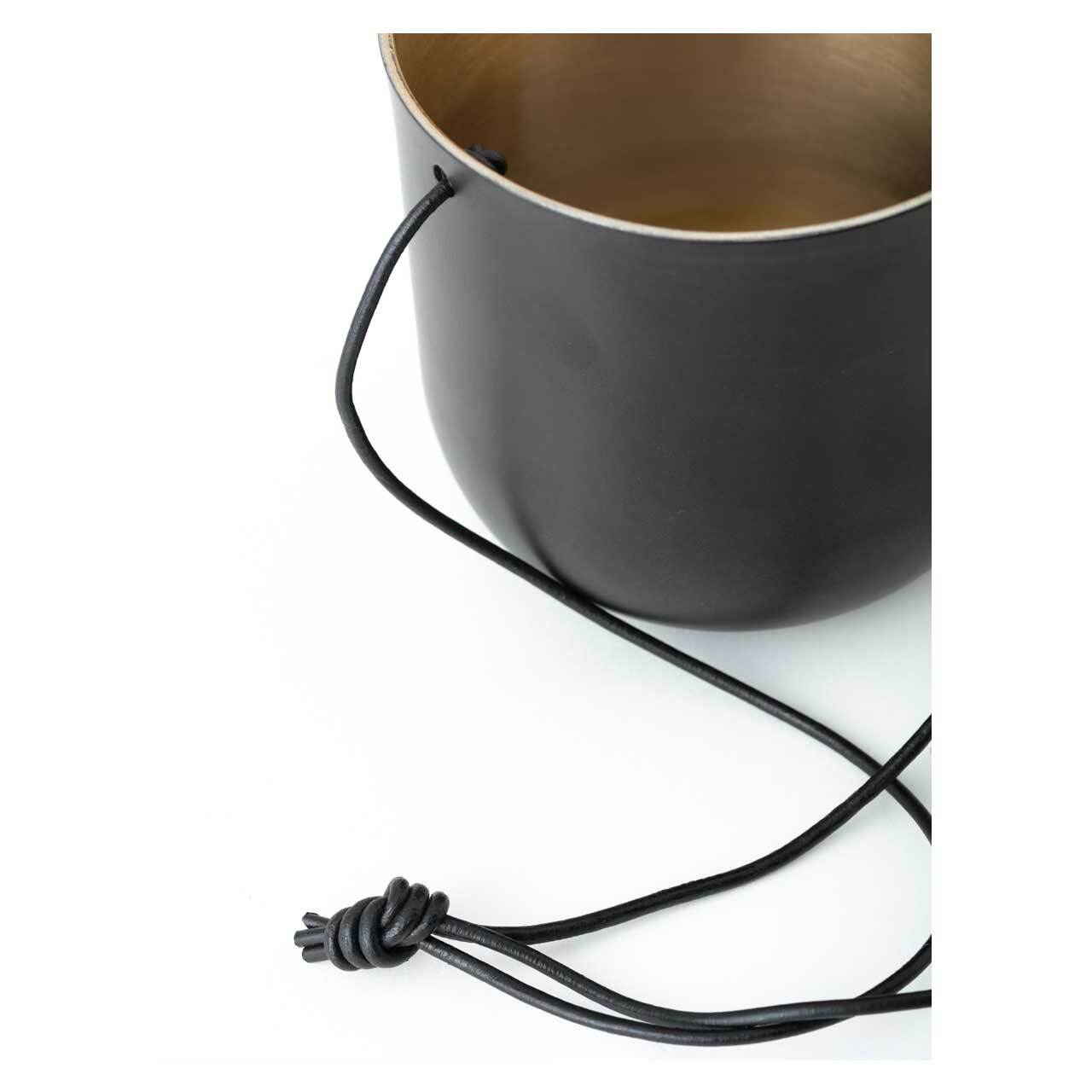 アルミと革紐の組み合わせがモダンな印象のプランター。