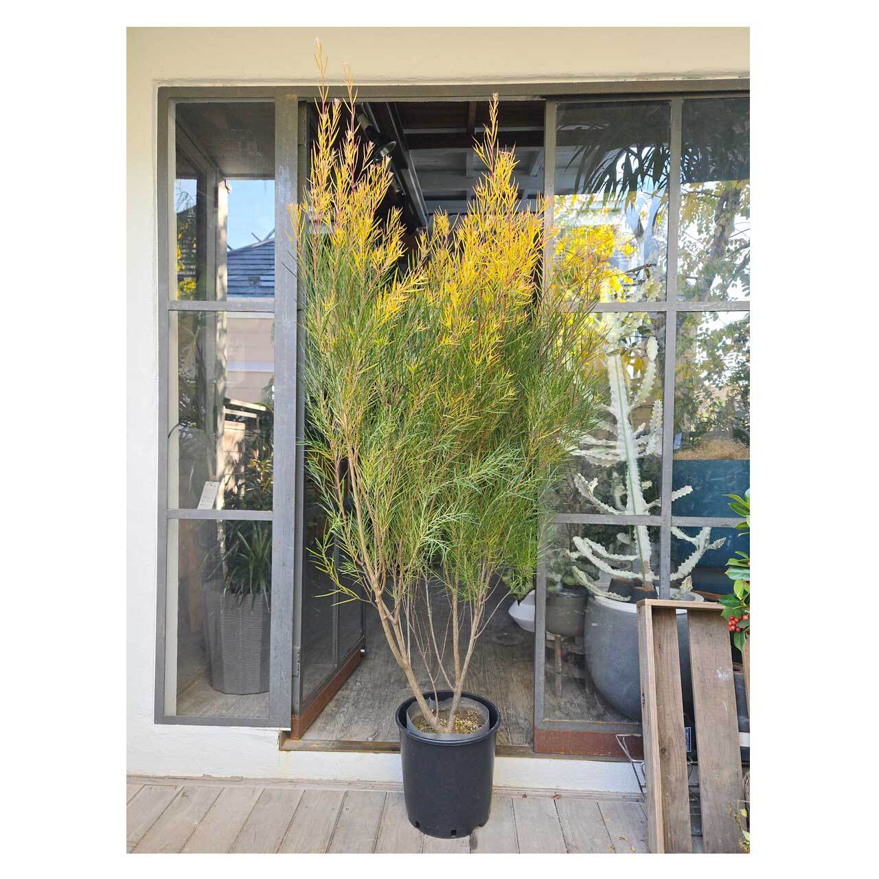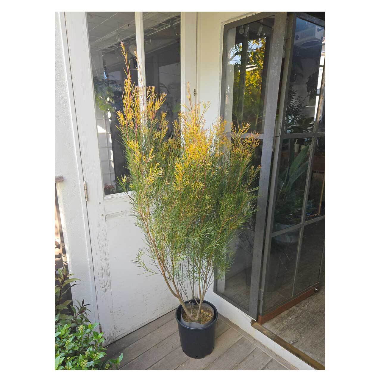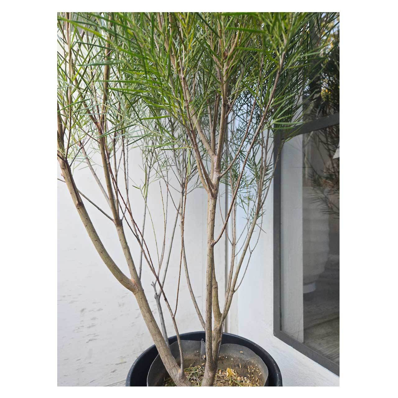 アカシアのフロリバンダという品種で葉は細長く特徴的ですが、全体の感じはふさぁっとしていて、しなやかな枝が風に揺れる様子がちょっと優雅な雰囲気もあり、眺めていると穏やかな気持ちになれそうです。