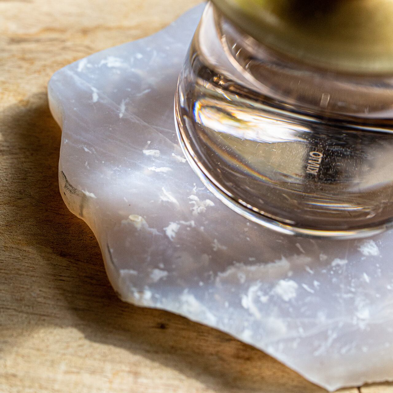 天然石を大胆に切り出した、メノウ(瑪瑙/agate)コースター。光の当たり方や角度によっても、様々な美しい表情をみせてくれます。
