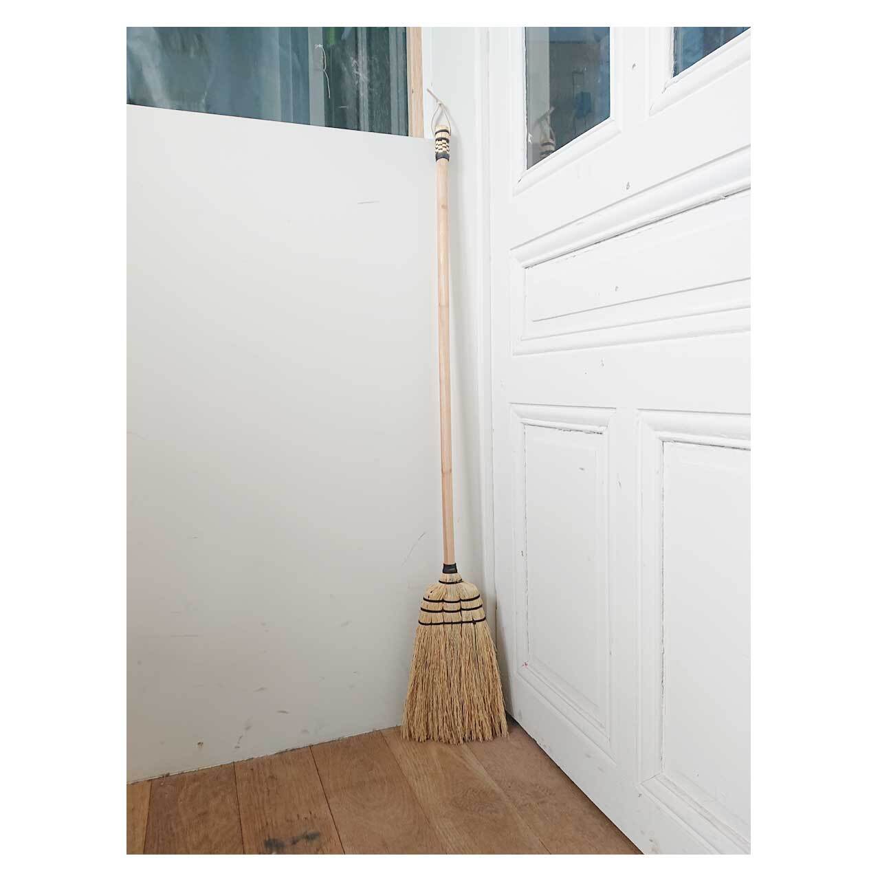 見た目にも素敵なホウキ。素材に使われている「ソルガム」とは、日本ではタカキビ、モロコシなどと呼ばれるイネ科の植物です。湿気を吸収しにくく、しっかりとした掃き心地なので、屋内だけでなくお庭やバルコニーなどのお掃除にも活躍してくれそうです。