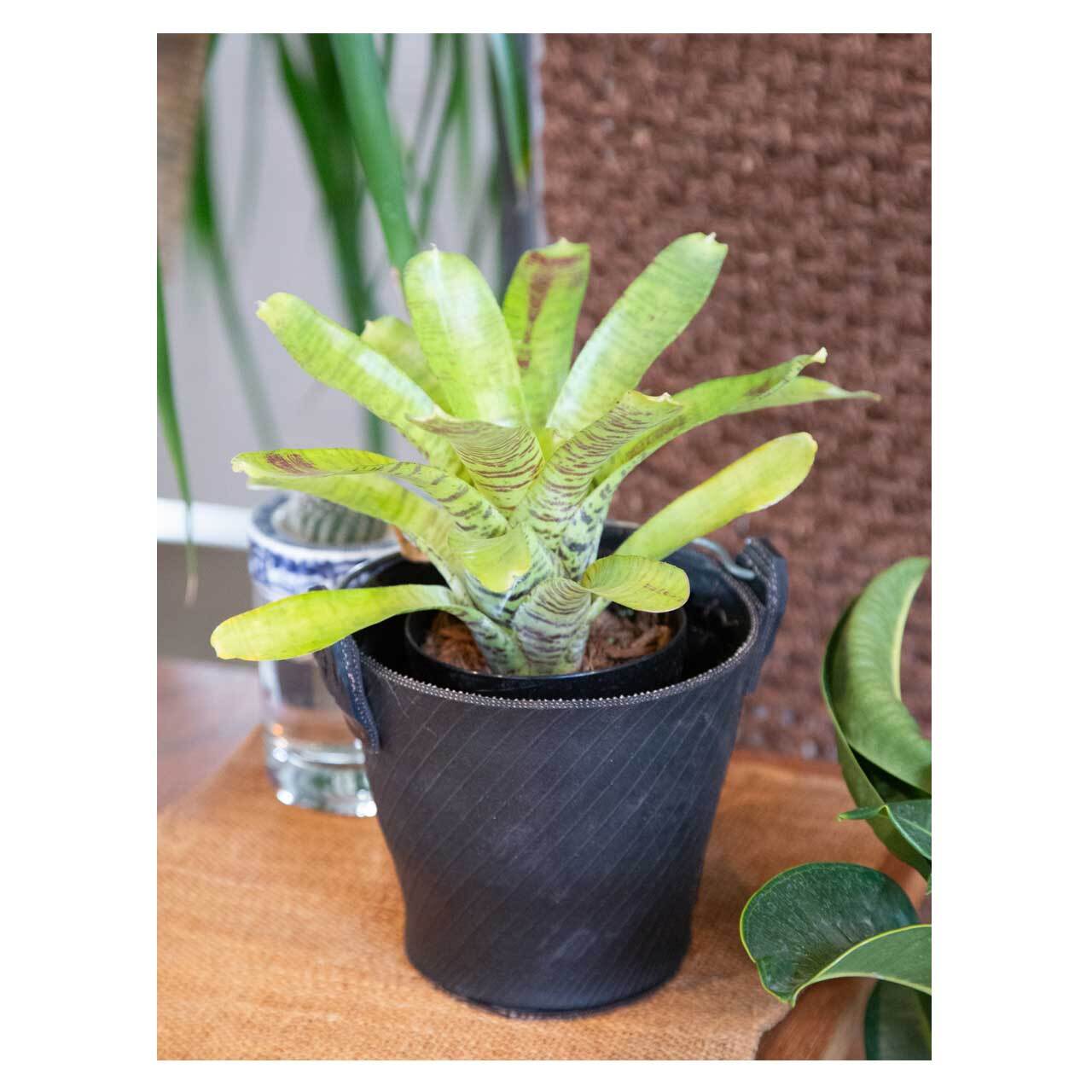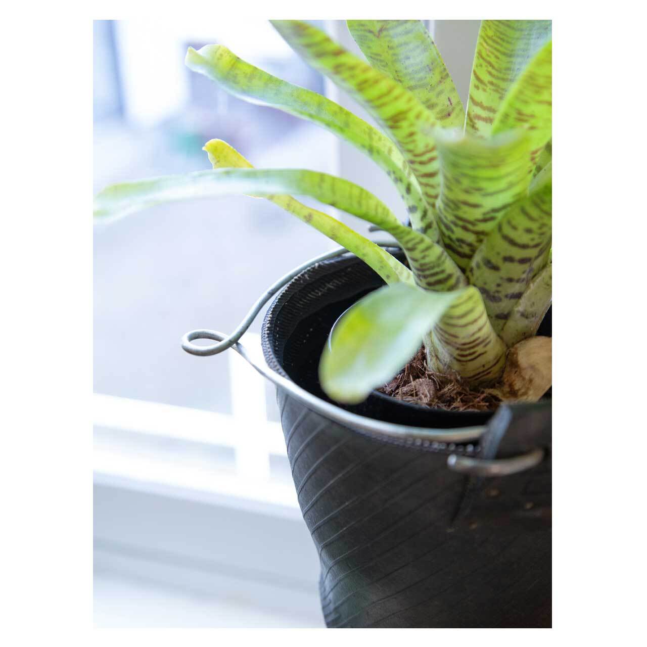 水が漏れる場合があるため、水の汲み置きにはお使いいただけませんが、こちらのXSサイズは植物の鉢カバーにおすすめの小さめサイズ。黒のシックな色味に、ちょっと歪な形がオリジナリティがあって面白いと思います。もともと再利用のタイヤではありますが、使っていくうちに更にヴィンテージ感が増しそうです。