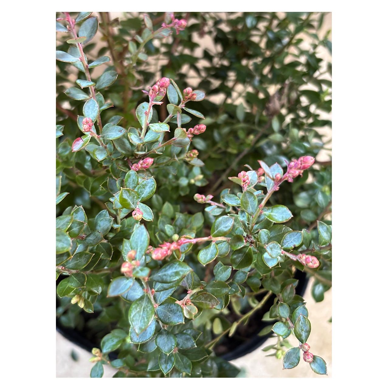 実が成り常緑で年間を通して楽しめる、ワイルドブルーベリー。こちらは"プリティ"という品種です。見た目から名付けられたのでしょうか、全体的に可愛らしい印象です。