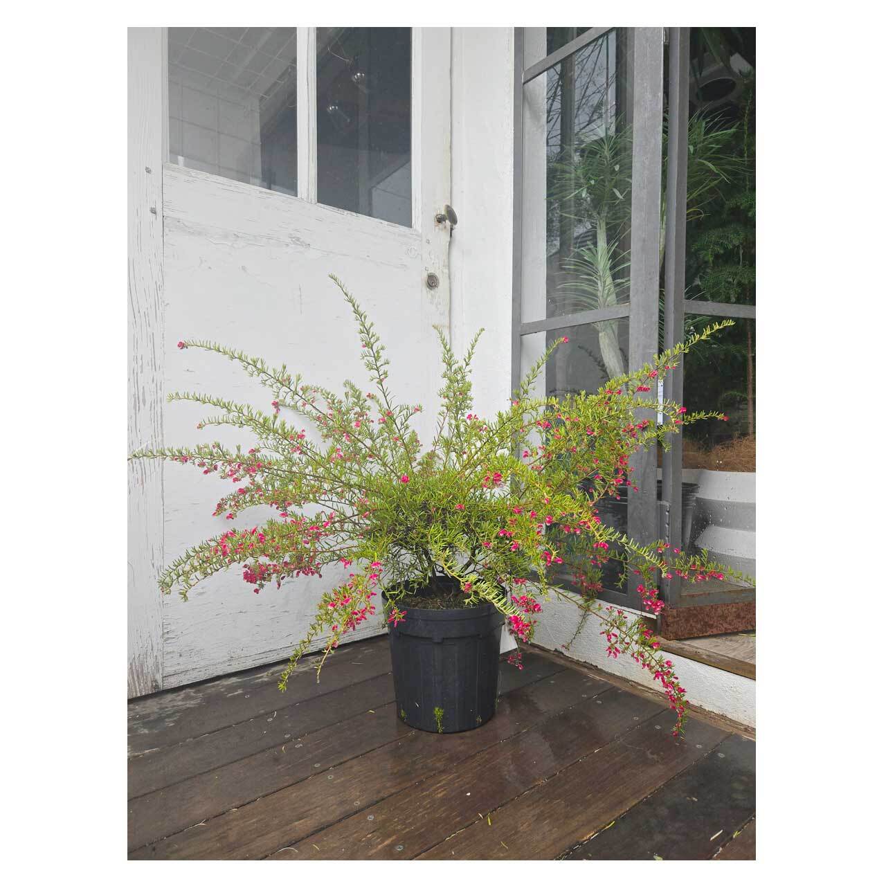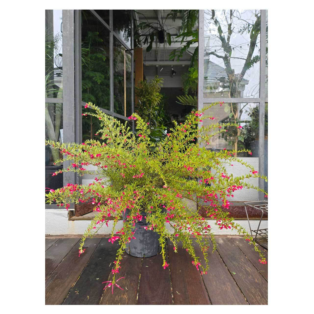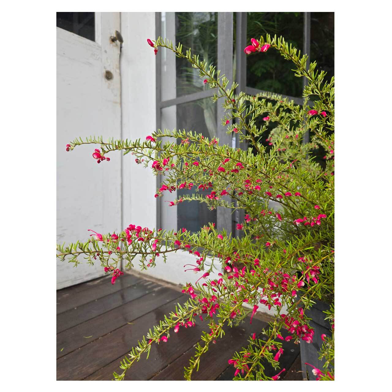 グレイッシュな色あいの葉が素敵な、グレビレア プーリンダ イルミナ。一見、ローズマリーのような葉の形をしています。