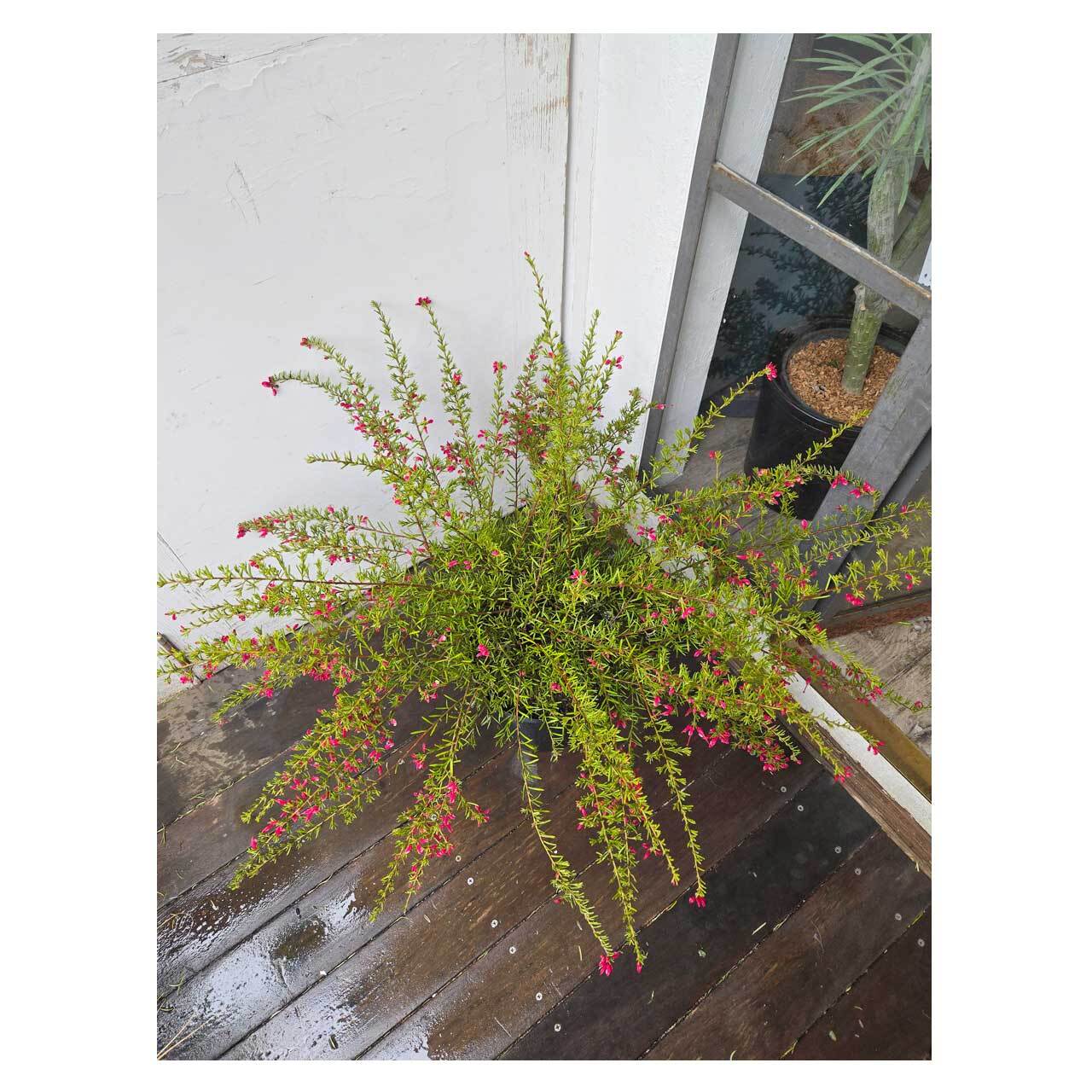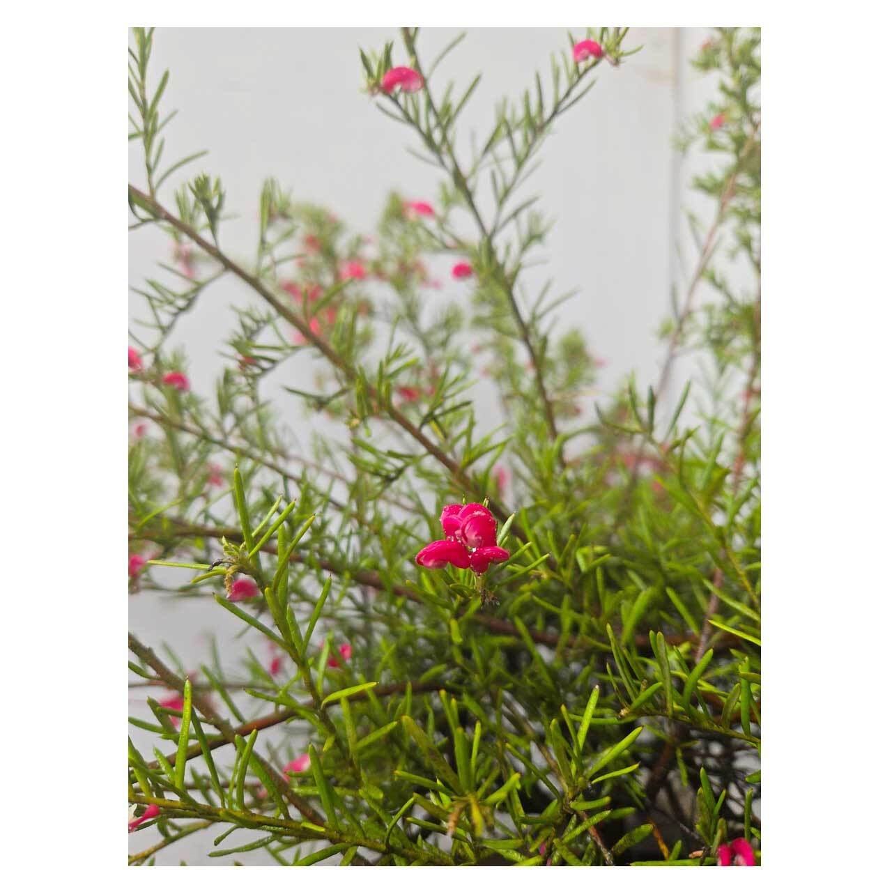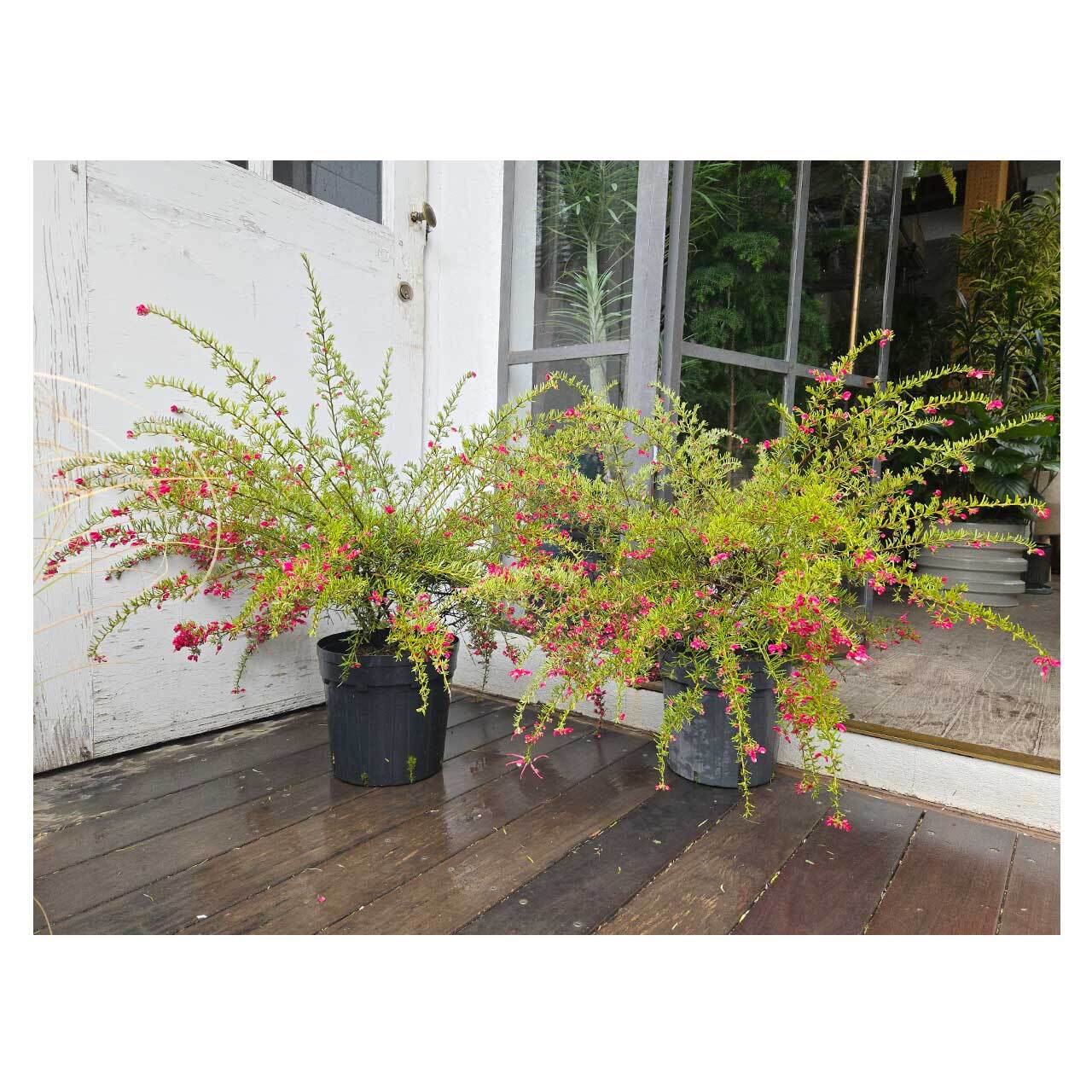 グレイッシュな色あいの葉が素敵な、グレビレア プーリンダ イルミナ。一見、ローズマリーのような葉の形をしています。