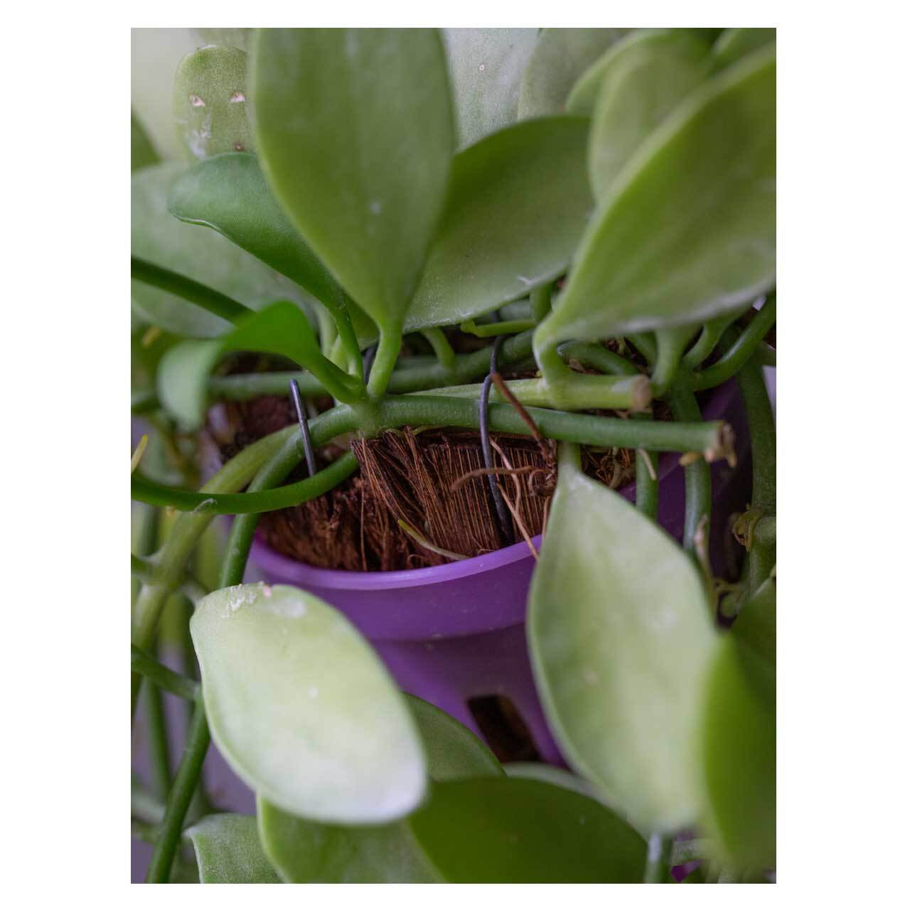 蔓性の着生植物で、写真のようにハンギングにすると垂れ下がるように伸びていく姿を楽しめます。