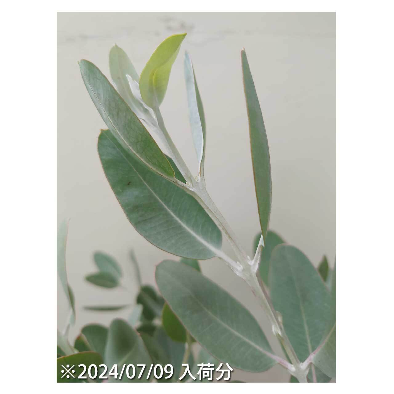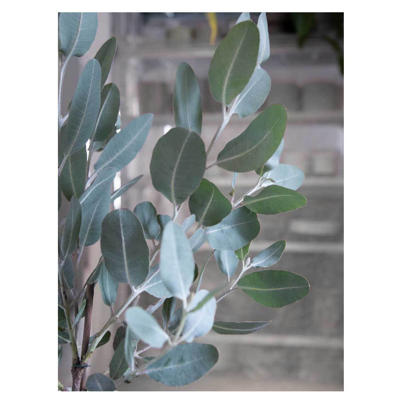 シルバーがかったグリーンの楕円形の葉が穏やかな印象の、ユーカリ プレウロカルパ。上品で、どこかほっと心が和むような雰囲気もあり、身近に置いておきたくなります。
