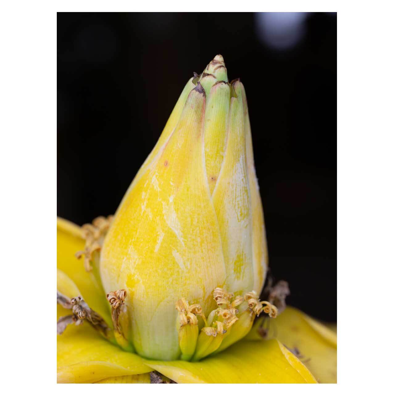 どうやっても見過ごせないくらい目を惹く、鮮やかな黄色の蓮のような形の花を咲かさせる ムセラ ラシオカルパ。初めて見たときの反応は皆、何これ…!といった感じです。