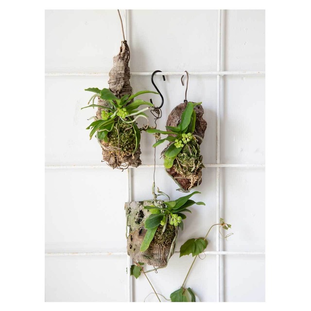 アンティークのような雰囲気も醸しつつ、小さめのサイズなので、さりげなくオブジェのように飾れるところが魅力的です。初めての方も、かわいらしいサイズの着生蘭から育ててみませんか?