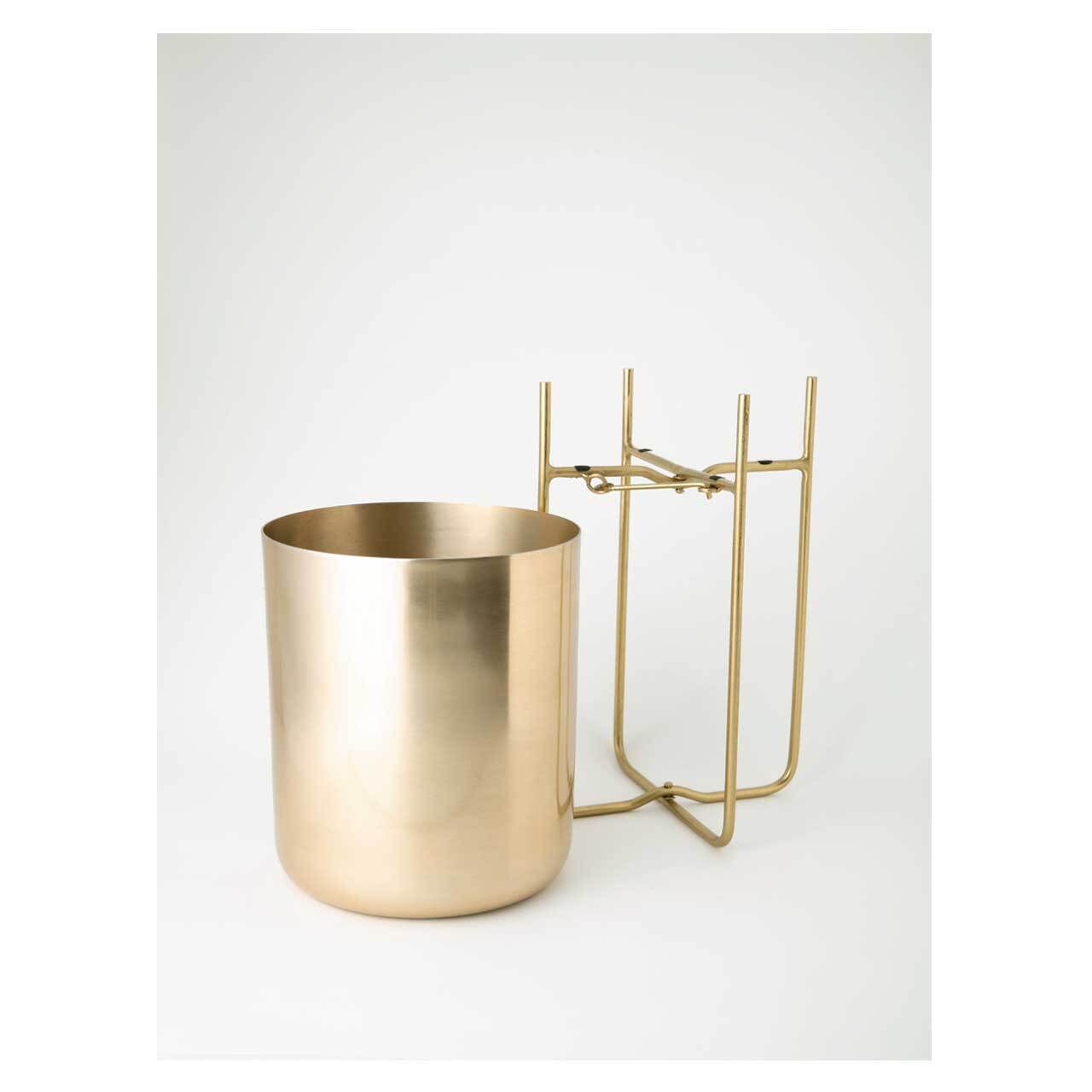 折りたたみ可能な脚に乗せる形で使用でき、ポット部分はアルミなので、見た目よりも重すぎず扱いやすいかと思います。光の加減と背景によって1枚目の写真はピカピカした感じが強く出ていますが、実際にインテリアにあわせてみると主張が強すぎず好印象です。