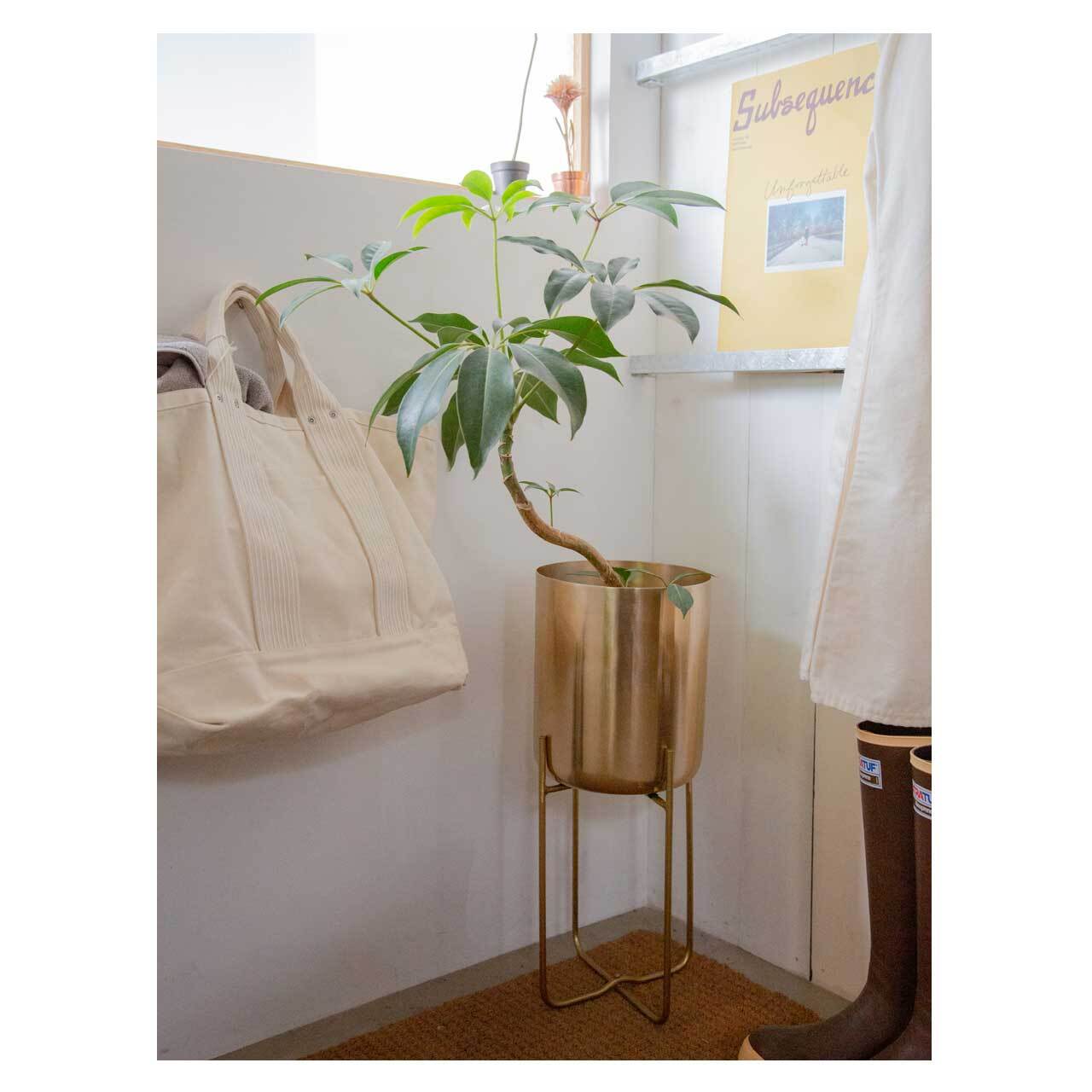 適度にラグジュアリーな雰囲気と重厚感を纏う、アイアンスタンド付きのプランター。ゴールドカラーが映えます。