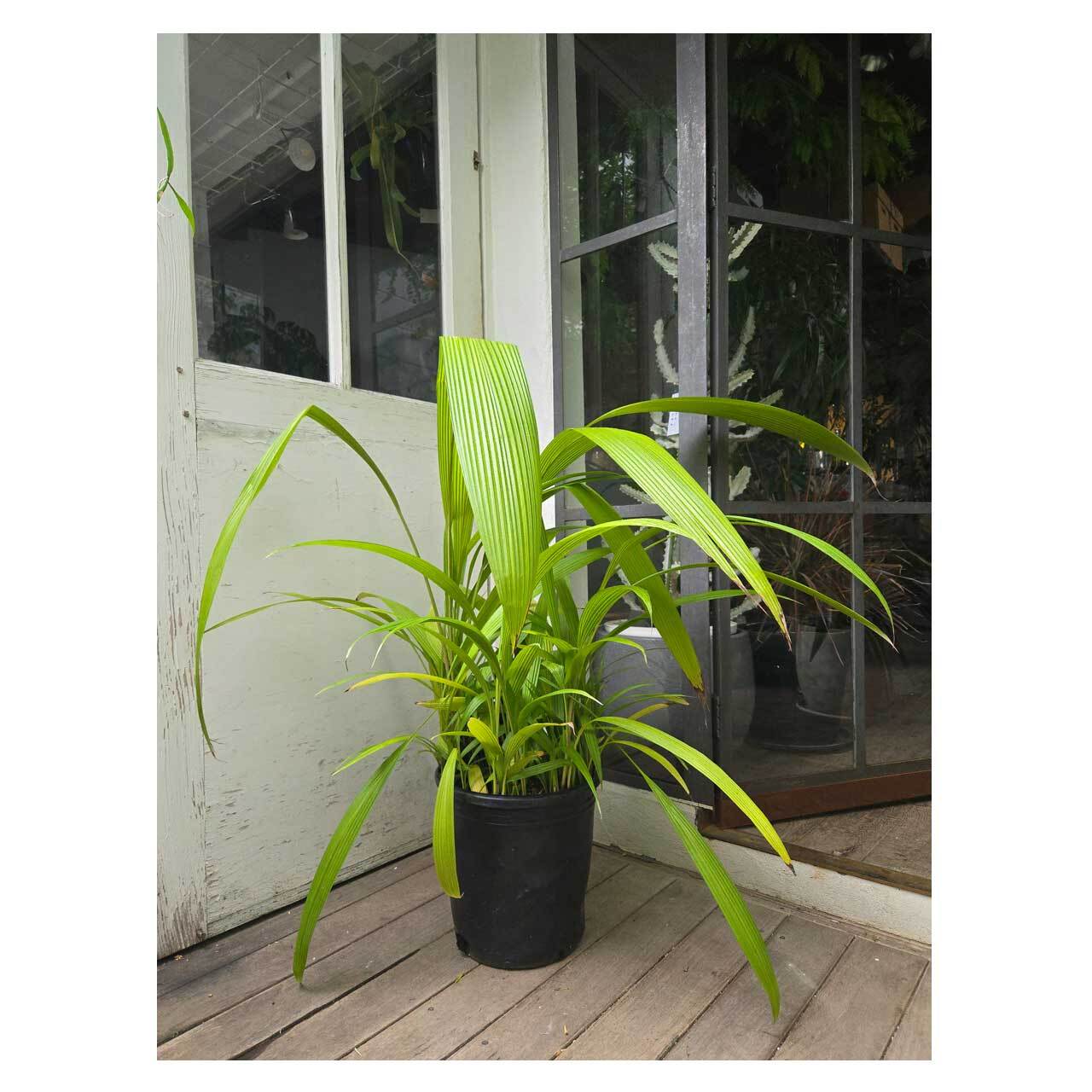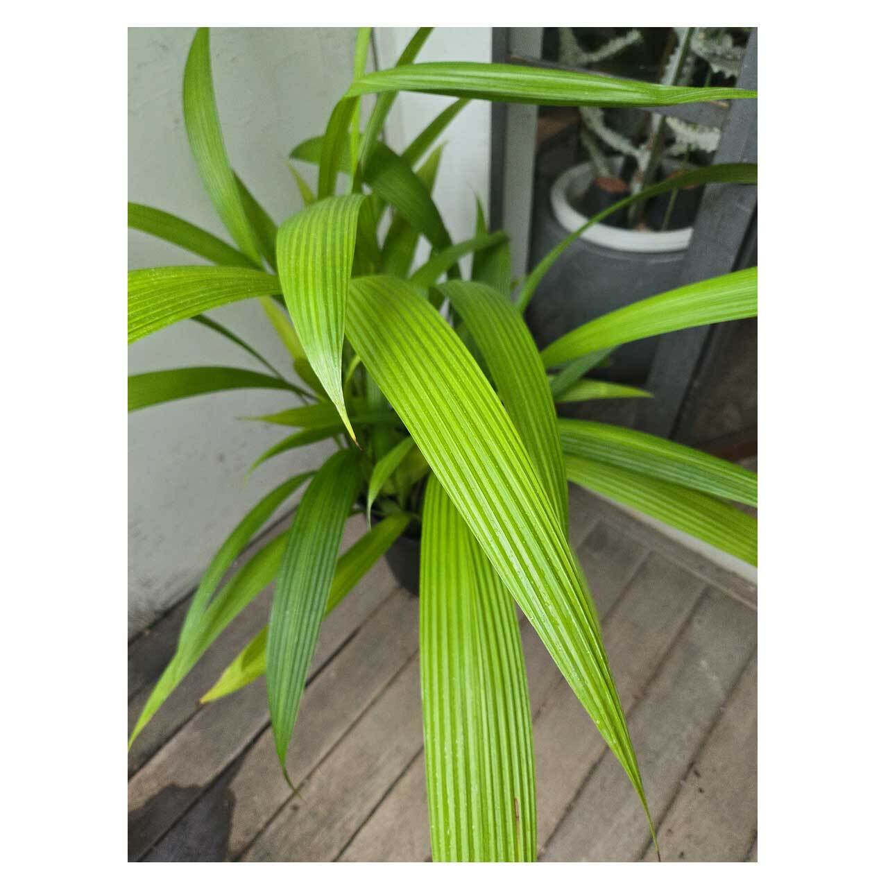 綺麗に筋の入ったダイナミックな葉が、ゆったりとした印象のカークリコ(カークリゴ)。生花材としてもよく使われる熱帯地域の常緑多年草で、ヤシに似ていることからパームグラスとも呼ばれます。
