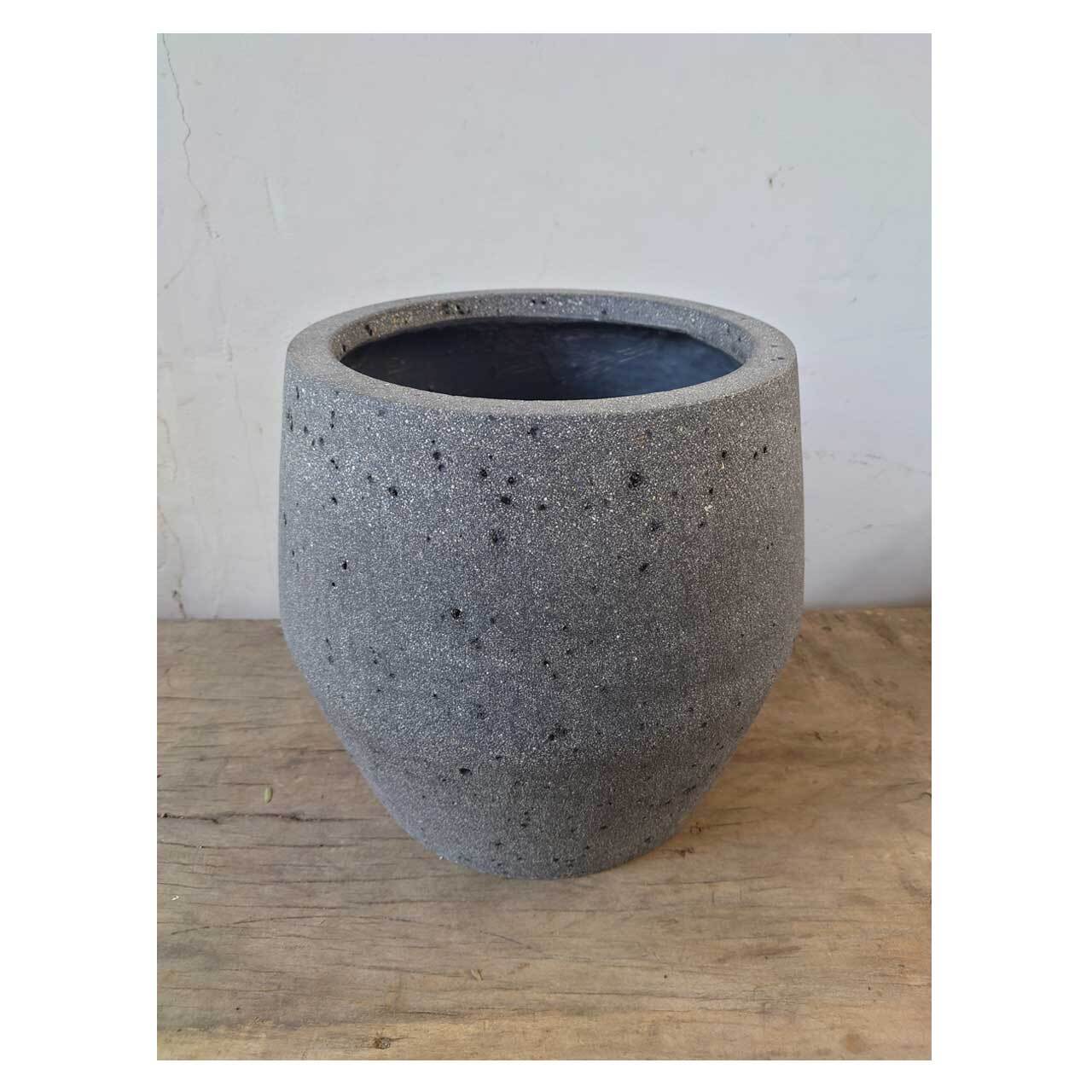 気泡痕がアクセントとなった、ストーンのような風合いの鉢カバー。ファイバーセメント製です。