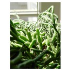 リプサリスはサボテン科の着生植物です。サボテンと言えば棘のイメージがありますが、こちらは白く柔らかな棘で、ホワホワと生えている感じです。茎は細い円柱状で、よく分岐します。