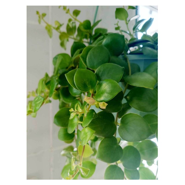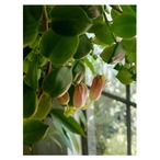 爽やかな色あいの多肉質の葉が連なる様子は、インテリアグリーンとしてとても映えてくれます。観葉としてはもちろん、現時点でちらほら咲いている美しい花も魅力的。初めてのハンギンググリーンにも、おすすめです。