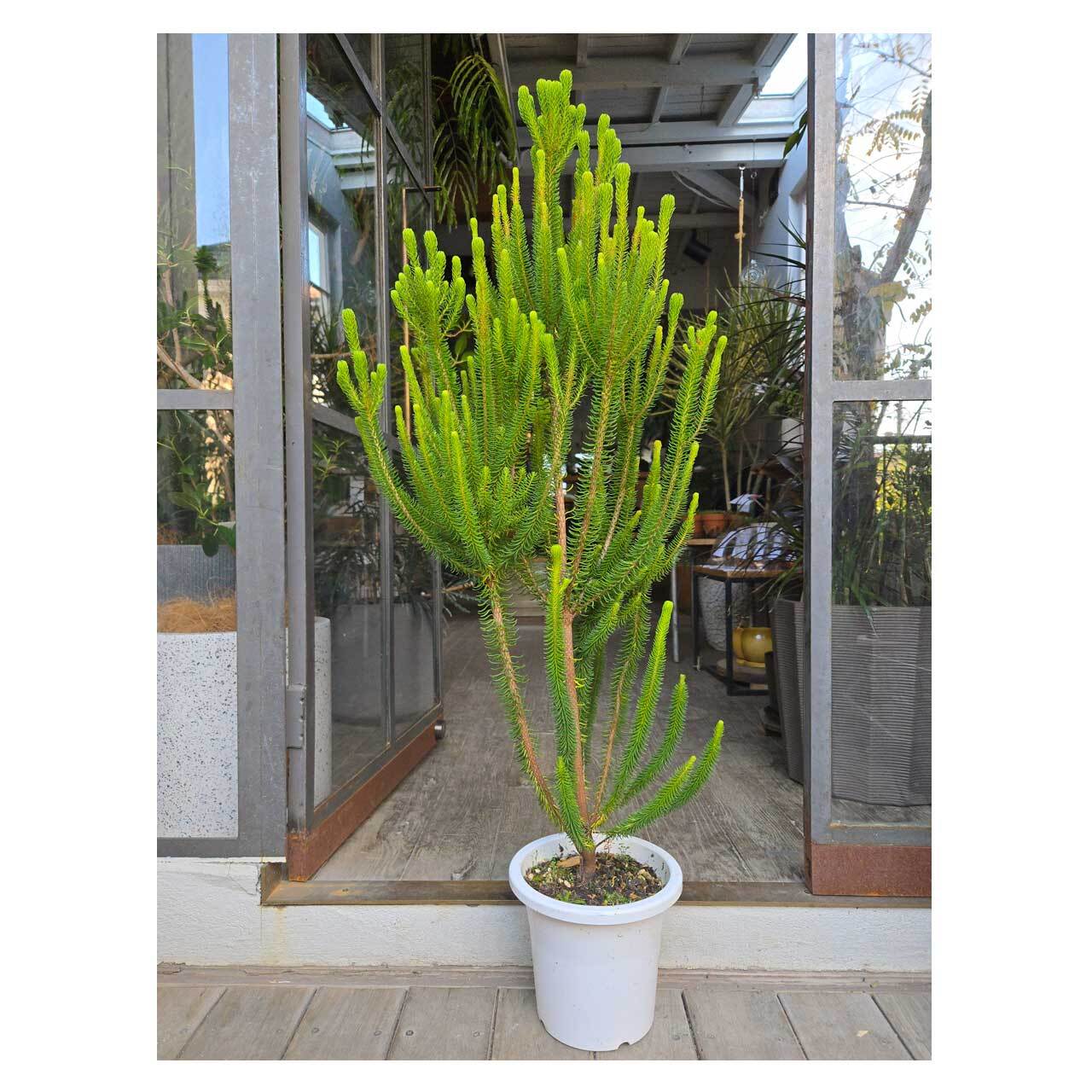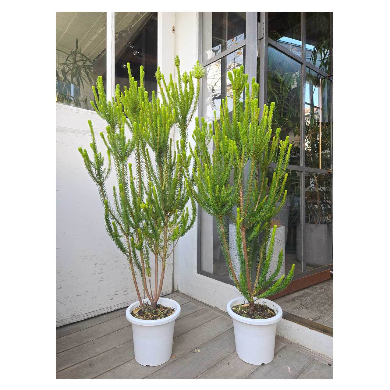 針葉樹のような葉、サボテンのようなフォルムでニョキニョキと密集して伸びる様子がユニークな、エリカ セッシリフローラ。鮮やかな緑色と密で仲良さげな佇まいで、眺めていると不思議と愛着が湧いてきます。