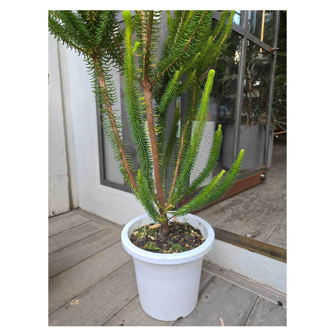 ※写真の白のプラポットでお届けします。ポットサイズのわりに高さとボリュームがあるので、少しバランスを崩すと倒れやすいです。