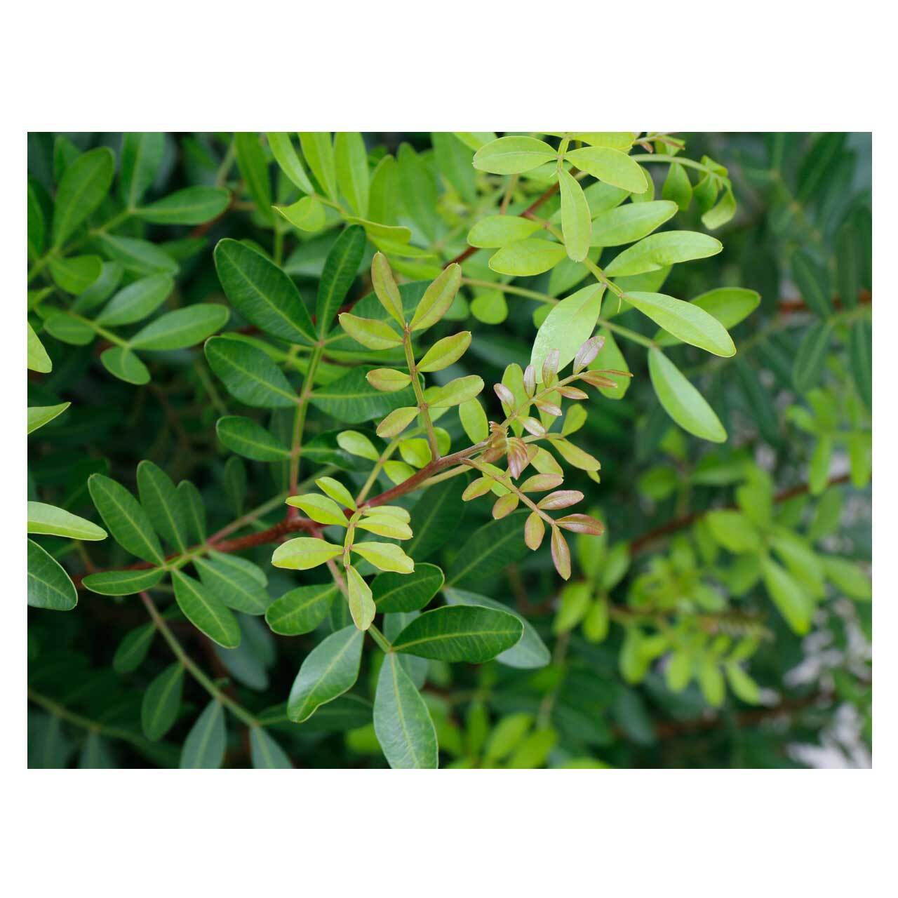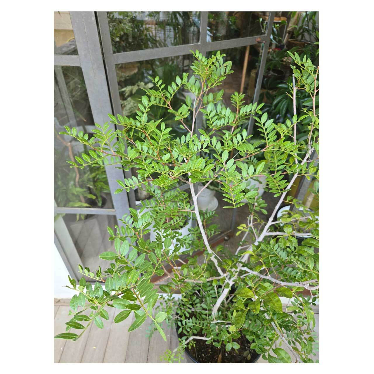 ウルシ科ピスタチオ属の常緑低木で、実を食べるピスタチオとは近縁種ではありますが別種です。雌雄異株でどちらも初夏に花が咲きますが、雌木にはその後赤い実がつきます。暖地では冬に銅葉に紅葉します。