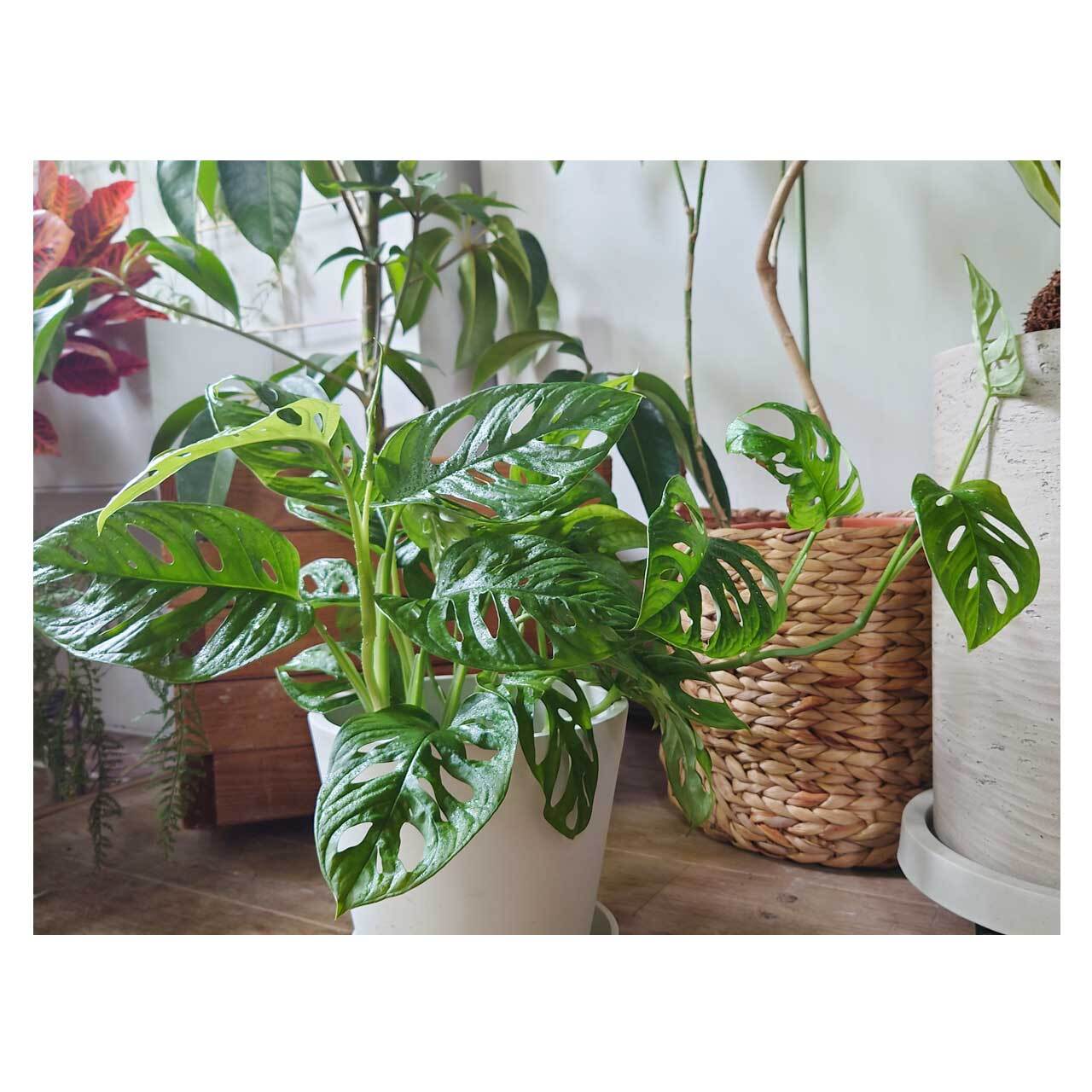 その名の通り窓のように穴の開いた葉がユニークな マドカズラ。爽やかな佇まいで、インテリアグリーンとしても人気の植物です。