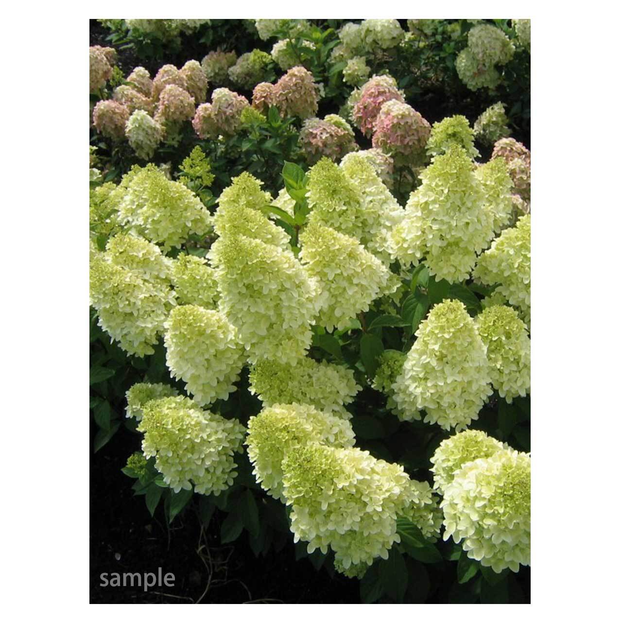 白~爽やかなライムグリーンの、円すいのような形の花房が特徴的なアジサイの仲間、ノリウツギ。花付きが良くコンパクトにまとまりやすい "キャンドル" という品種で、秋にかけてピンクがかったアンティークな色あいへと変化していきます。