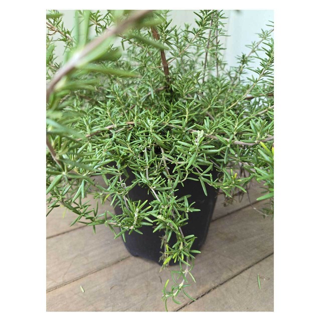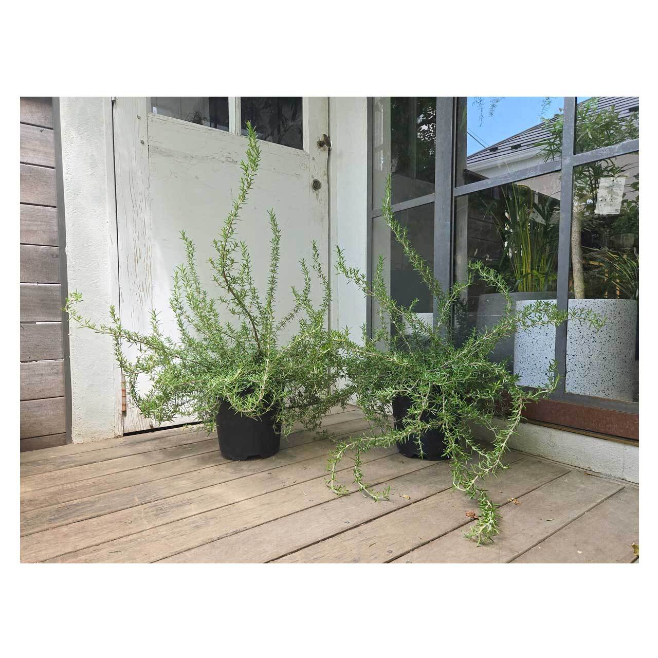 写真の黒のビニールポットでお届けします。這性でなかなかワイルドな感じの枝ぶりですが、近づくとふわっとローズマリーの良い香り。そんなギャップも楽しんでいただけたらと思います。