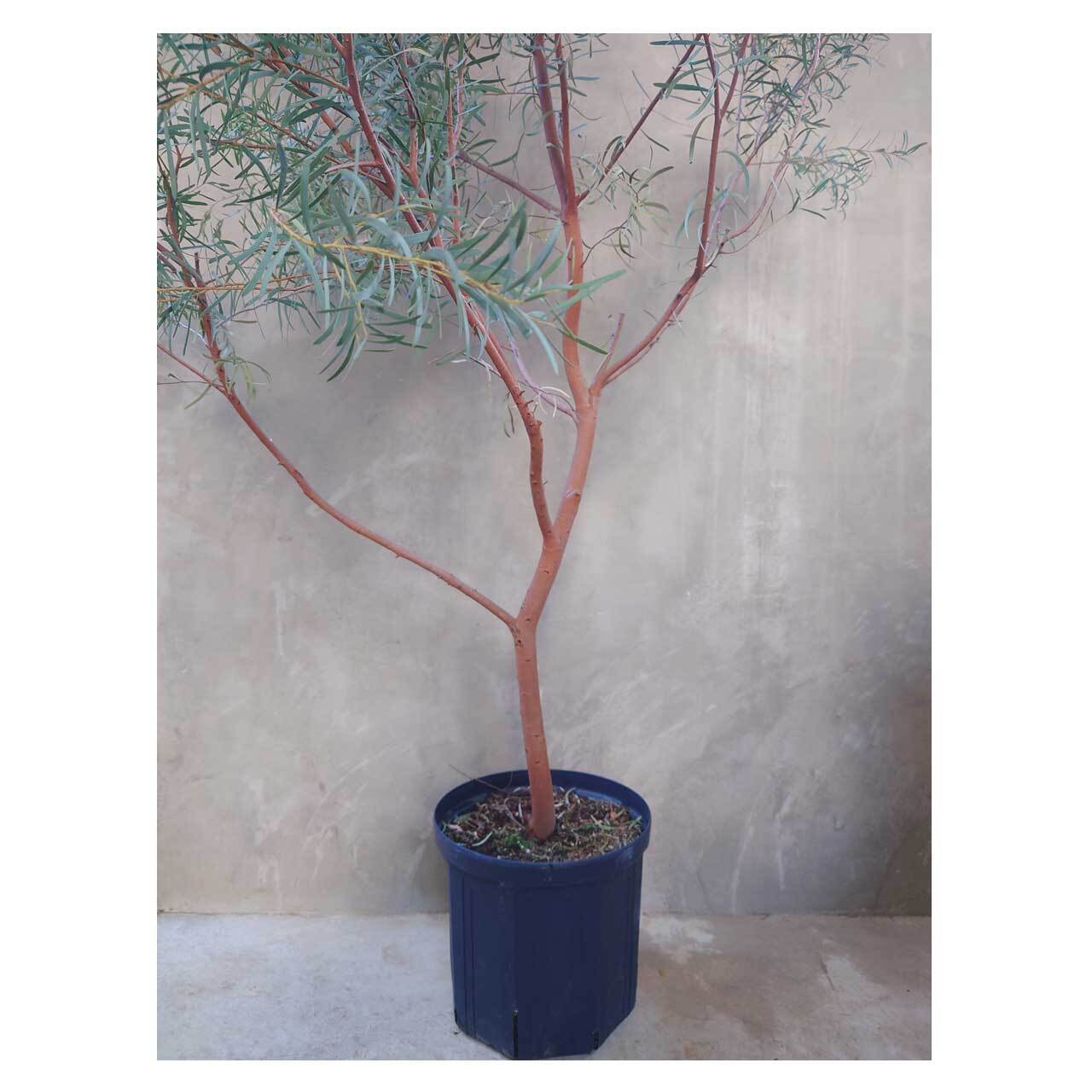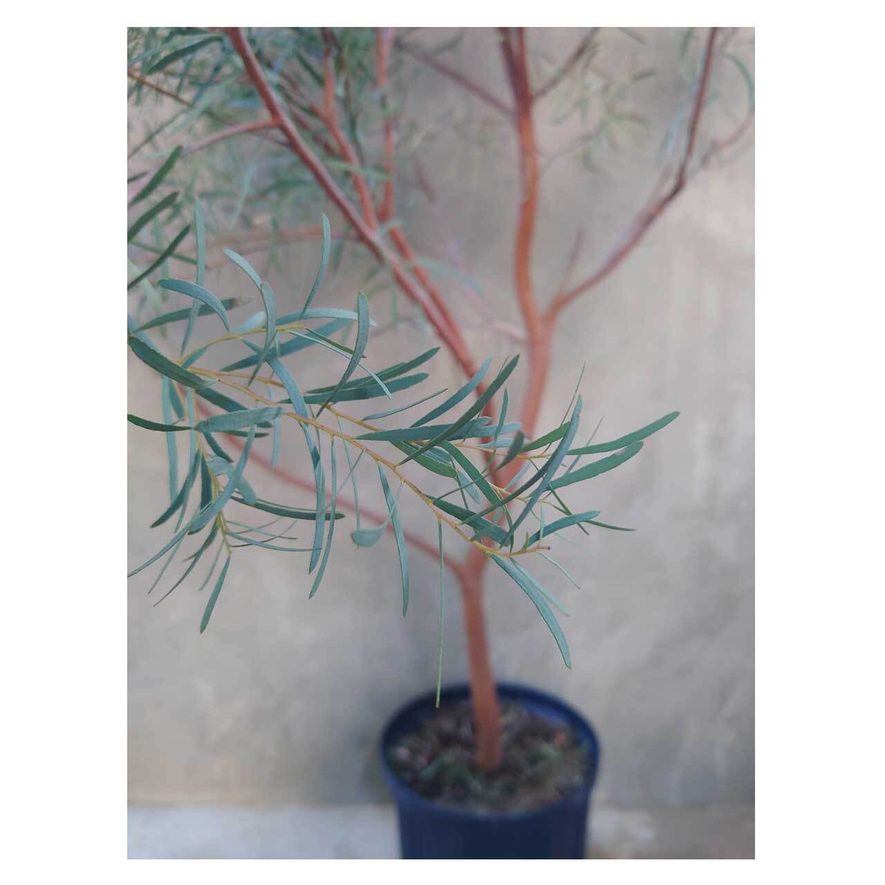 淡いブルーグリーンの細葉と赤茶色の樹皮が柔らかな雰囲気の、ユーカリ ニコリ。葉をちぎったりこすったりすると、ペパーミントのような香りがします。
