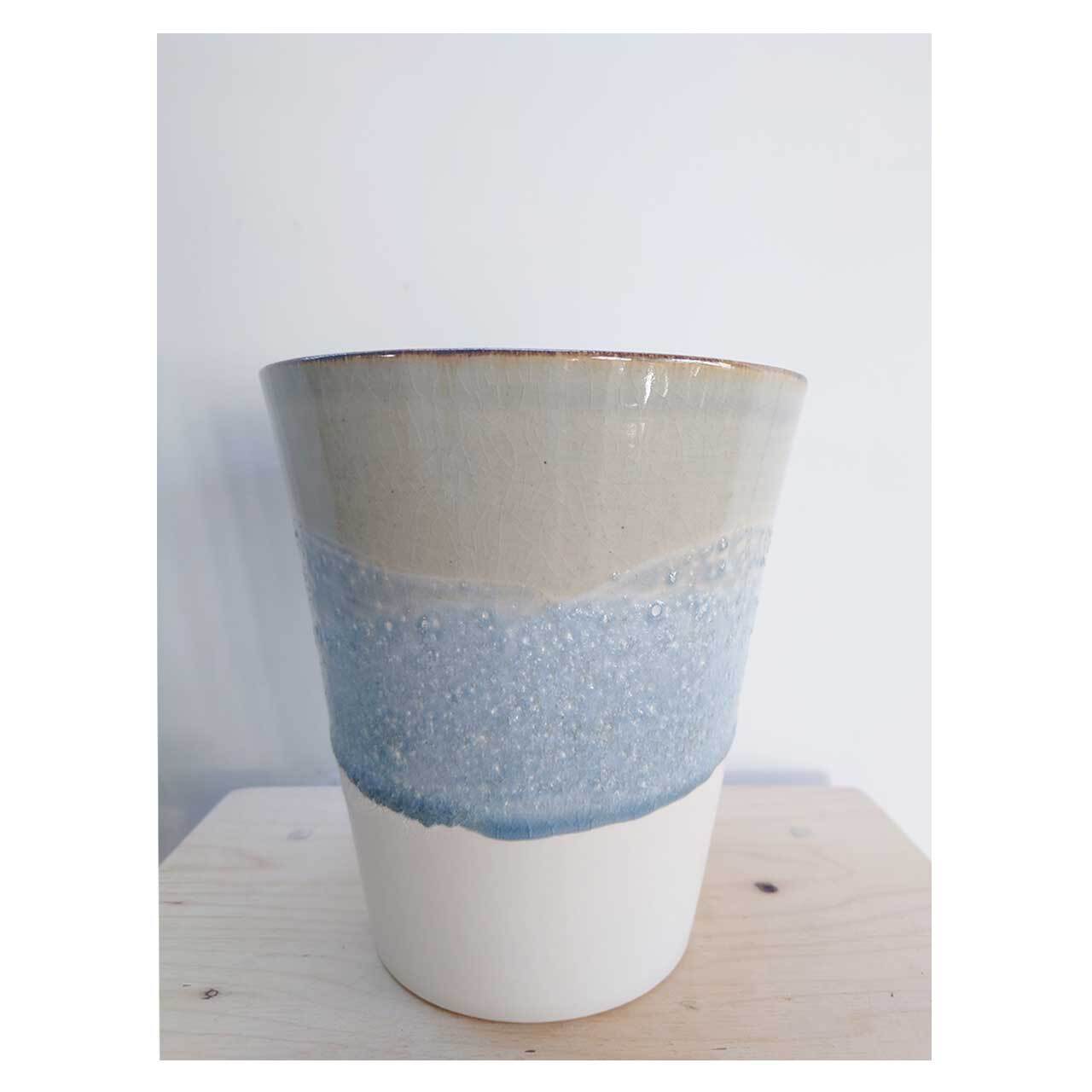 落ち着きのある陶器らしい佇まいと美しい色あいとのバランスが良い感じで、縦長のフォルムもスマートです。
