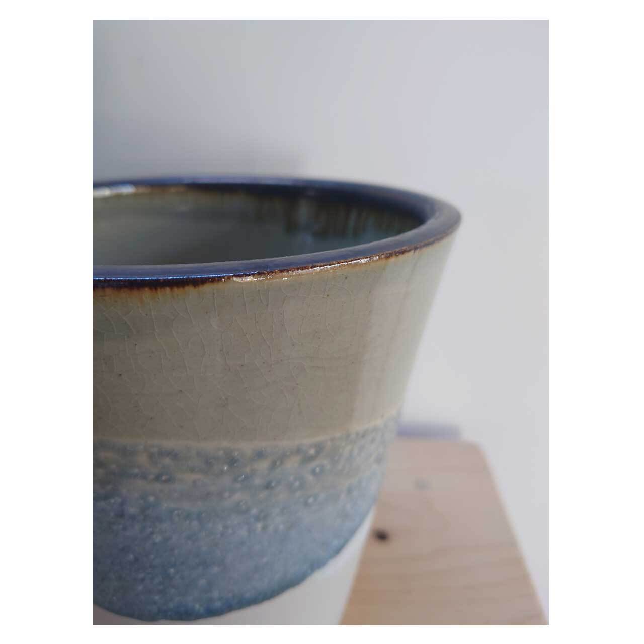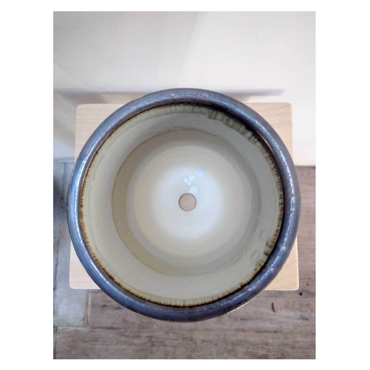 釉薬の色やニュアンス感も魅力的な、信楽焼のポット。淡いグレーが穏やかな雰囲気です。