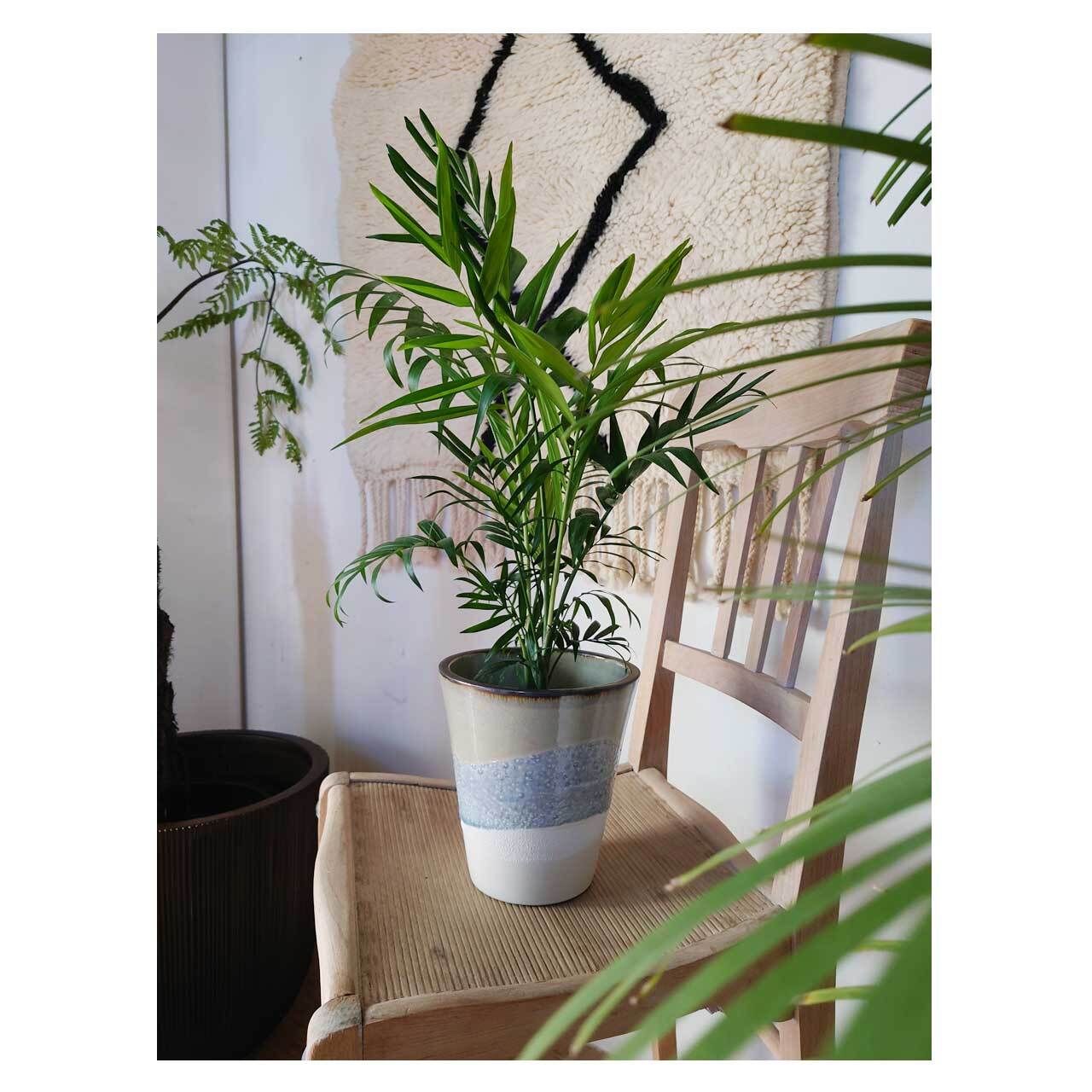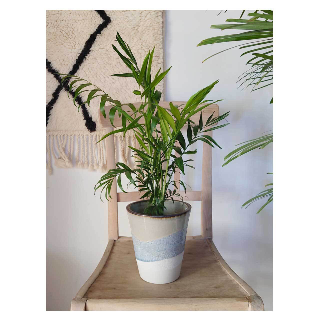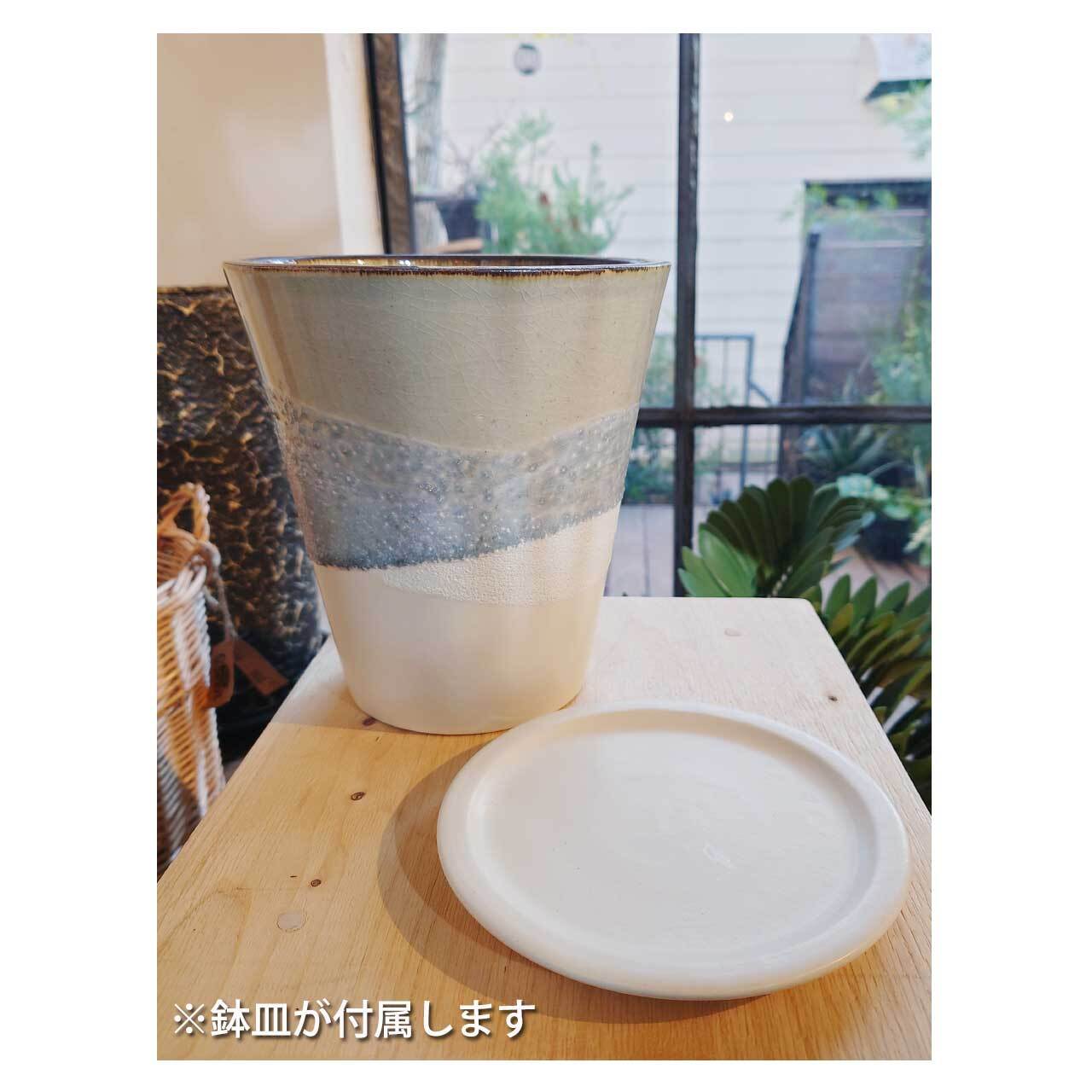底に向かって細くなるフォルムなので、鉢カバーとして使用する場合はサイズが合いにくい部分もあるかもしれませんが、底穴があるので直に植えてもお使いいただけます。(マットな質感のホワイトの鉢皿付きです。)