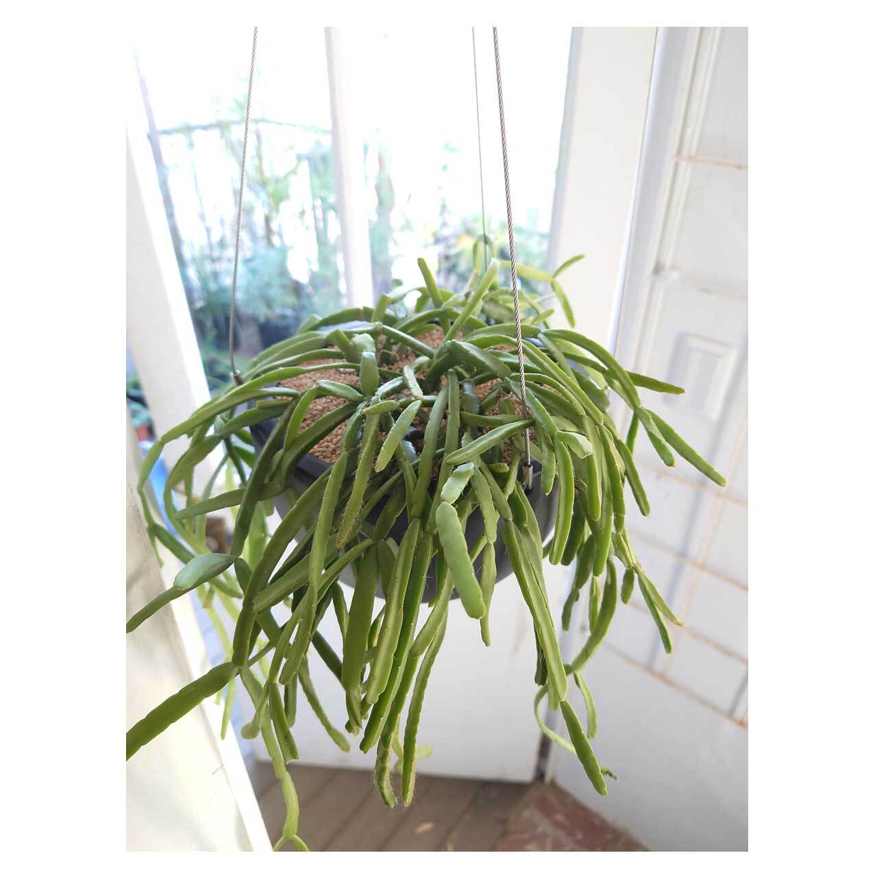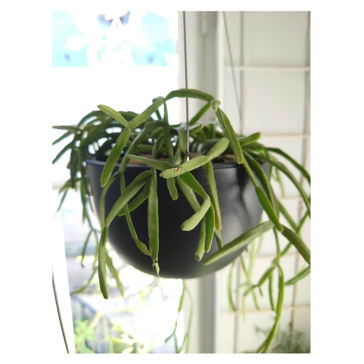 細長く少し角ばったような平たいような葉が特徴の リプサリス キルベルギー。くっきりとした葉の形や葉色が印象的です。