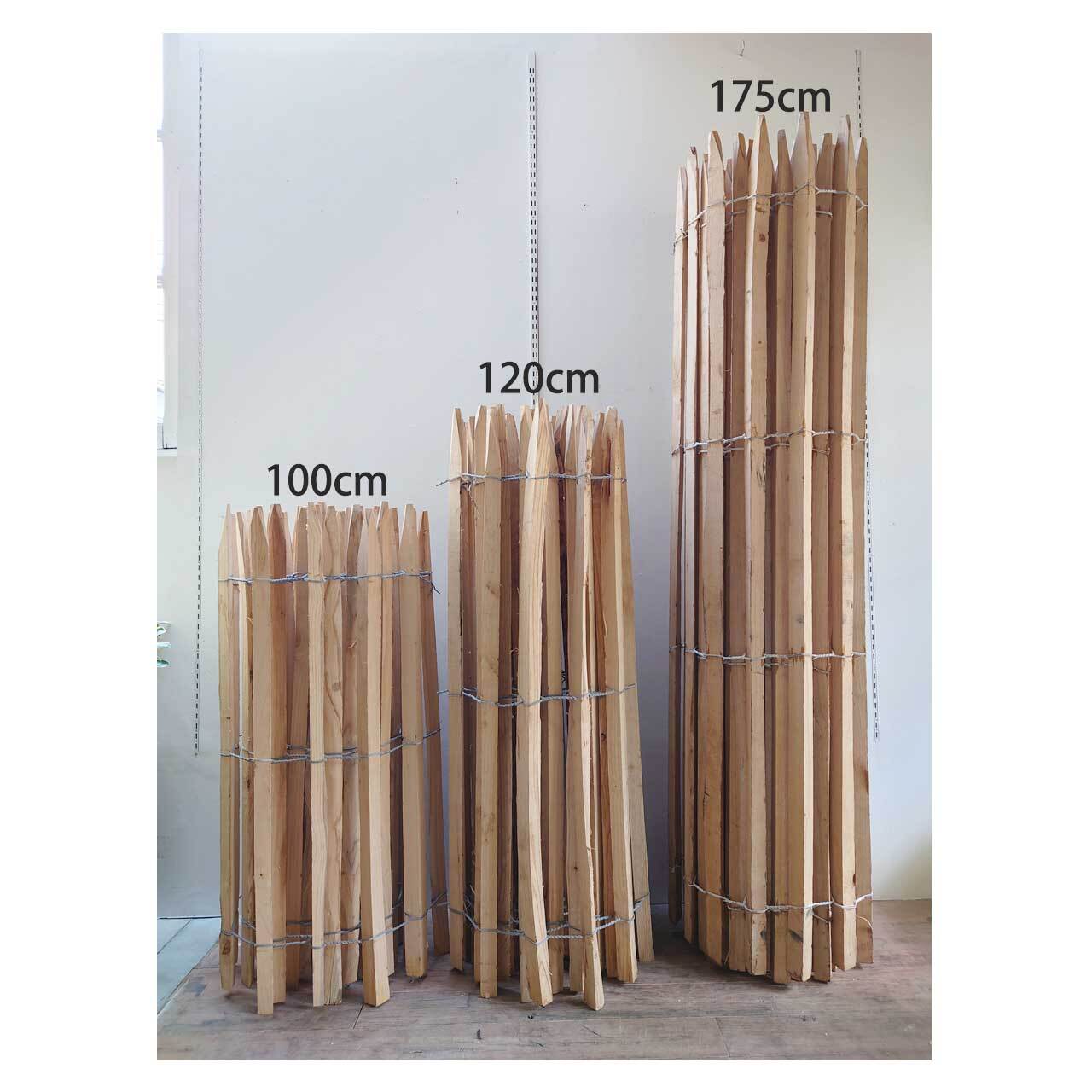 丸太柱を通常1~1.3m前後の間隔で打ち込み、それに固定して使用します。別売りとなりますが、丸太(5本セット)を一緒にご購入いただくことも可能です。ご希望の場合は、オプションをご選択ください。