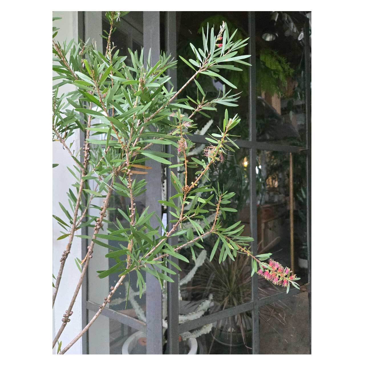 カリステモンは、オーストラリアを中心に30種ほどが分布するフトモモ科の常緑低木~高木。別名 'ブラシノキ'とも呼ばれる通り、ブラシ状の花が特徴的です。